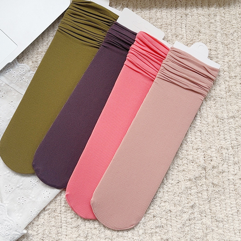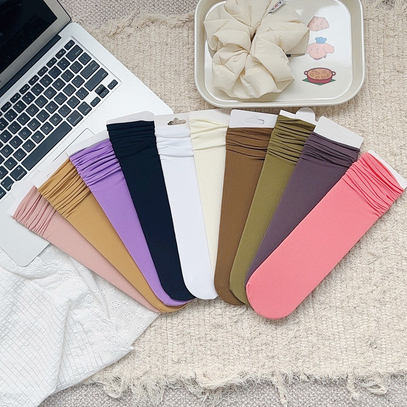 봄과 여름 얇은 쌓인 양말 여성의 화려한 벨벳 통기성 올 매치 아이스 양말 흑백 슬림 올 매치 튜브 양말