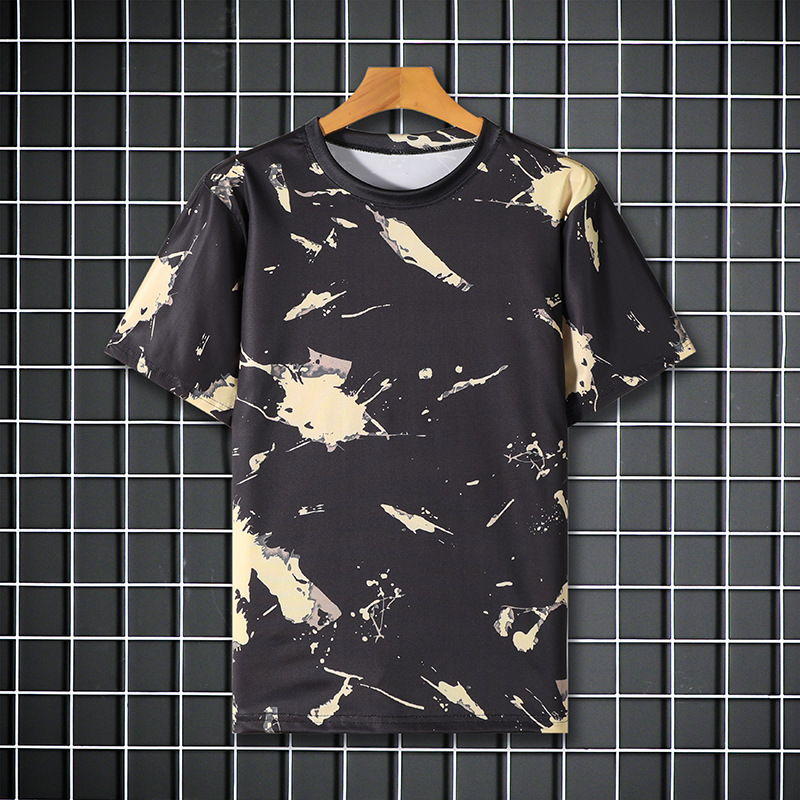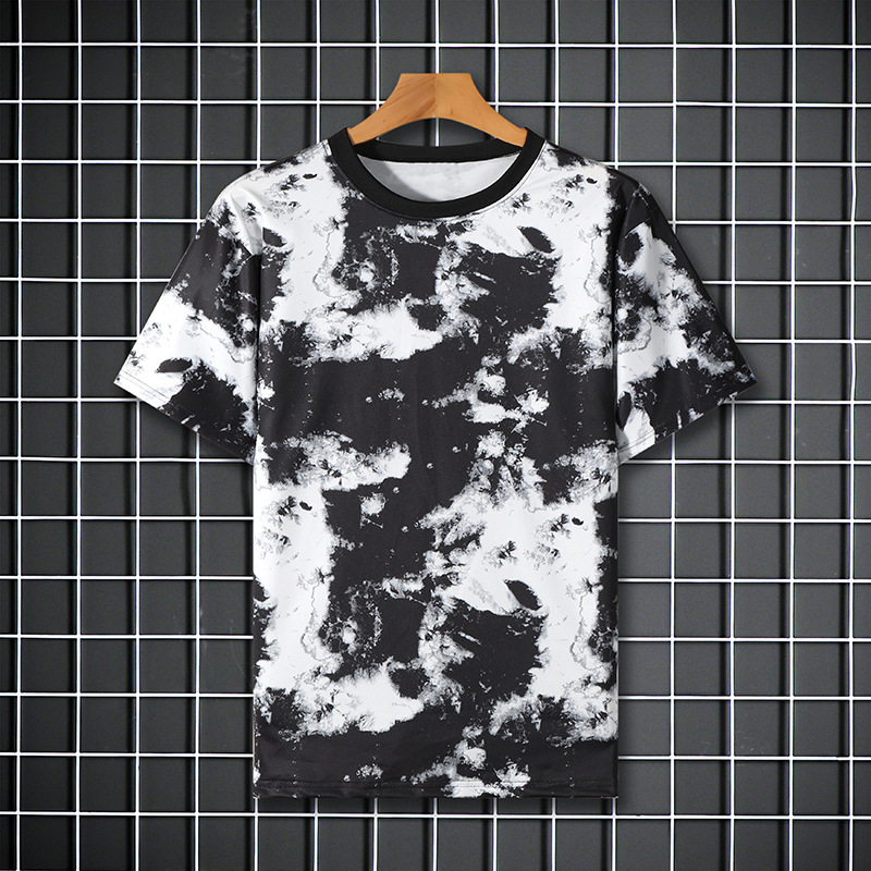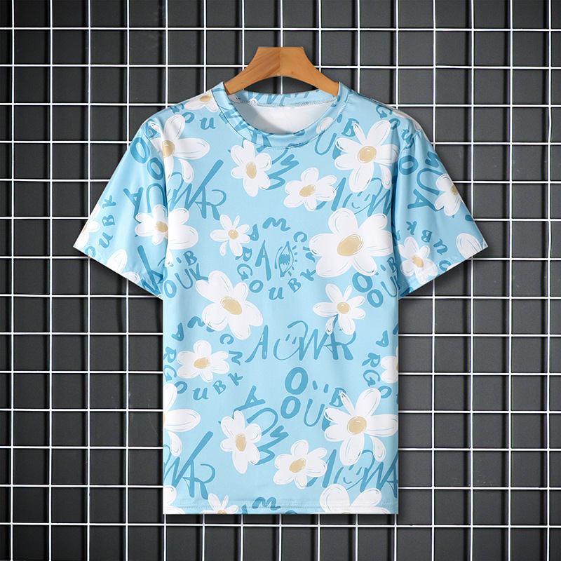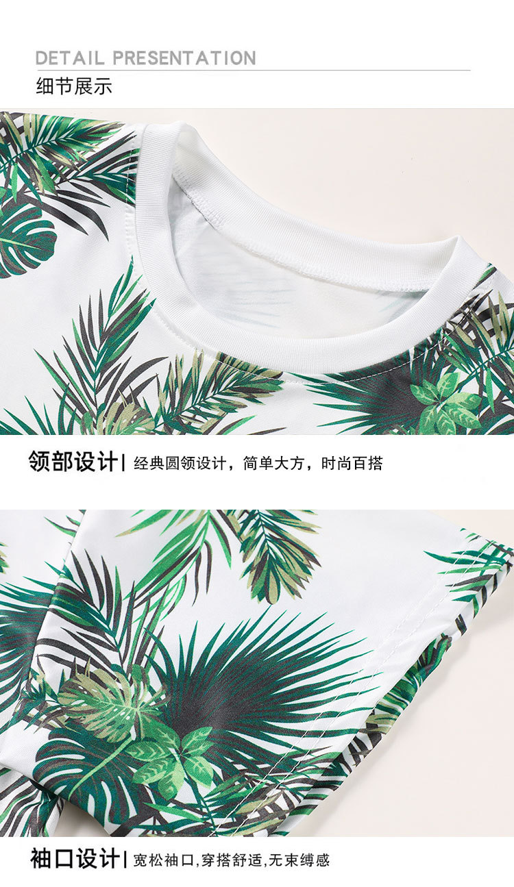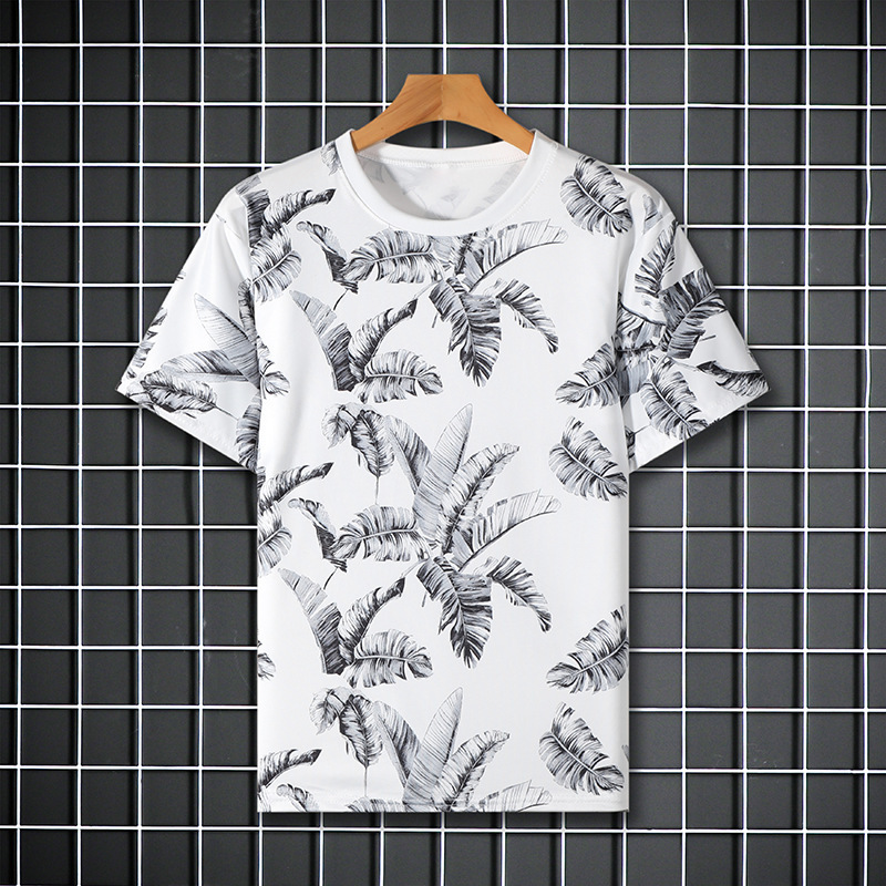 공장 도매 하와이 해변 남성 아이스 실크 얇은 휴일 아이스 실크 여름 트렌드 라운드 넥 짧은 소매 티셔츠스토어 가기