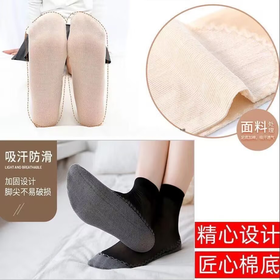 실크 스타킹 여성의 얇은 봄과 가을면 바닥 미끄럼 방지 크리스탈 실크 양말 내마모성 가을 검은 살색면 바닥 양말 중간 튜브스토어 가기