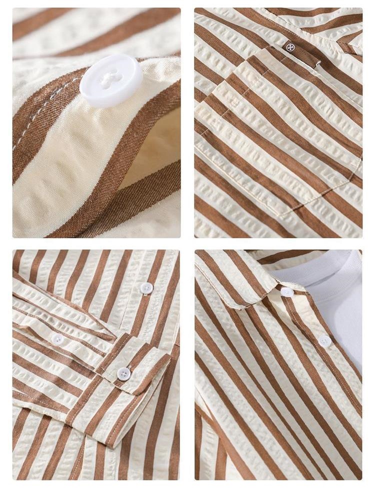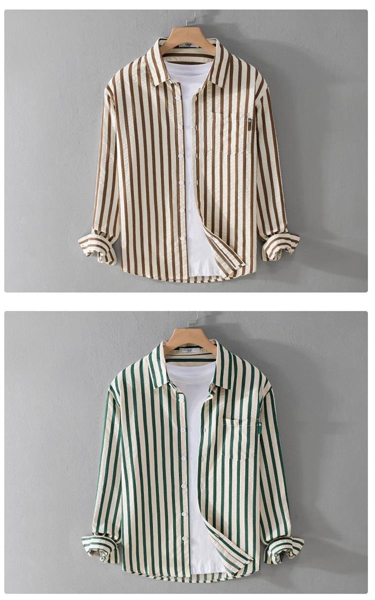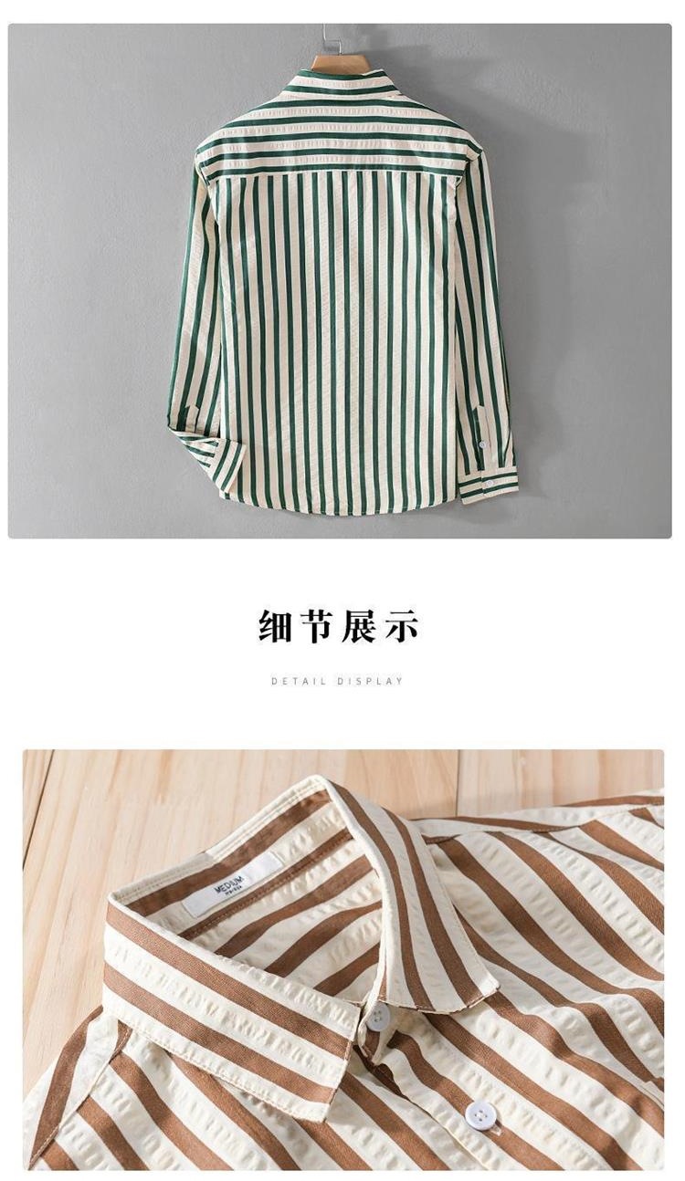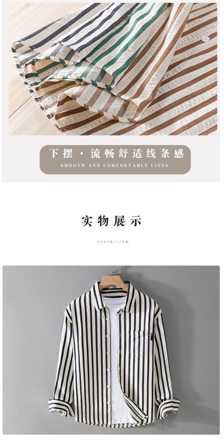 쇼핑몰 폐쇄 아이스 실크 스트라이프 긴팔 셔츠 여름 빛 럭셔리 트렌디 브랜드 대비 컬러 간단한 남성 캐주얼 셔츠