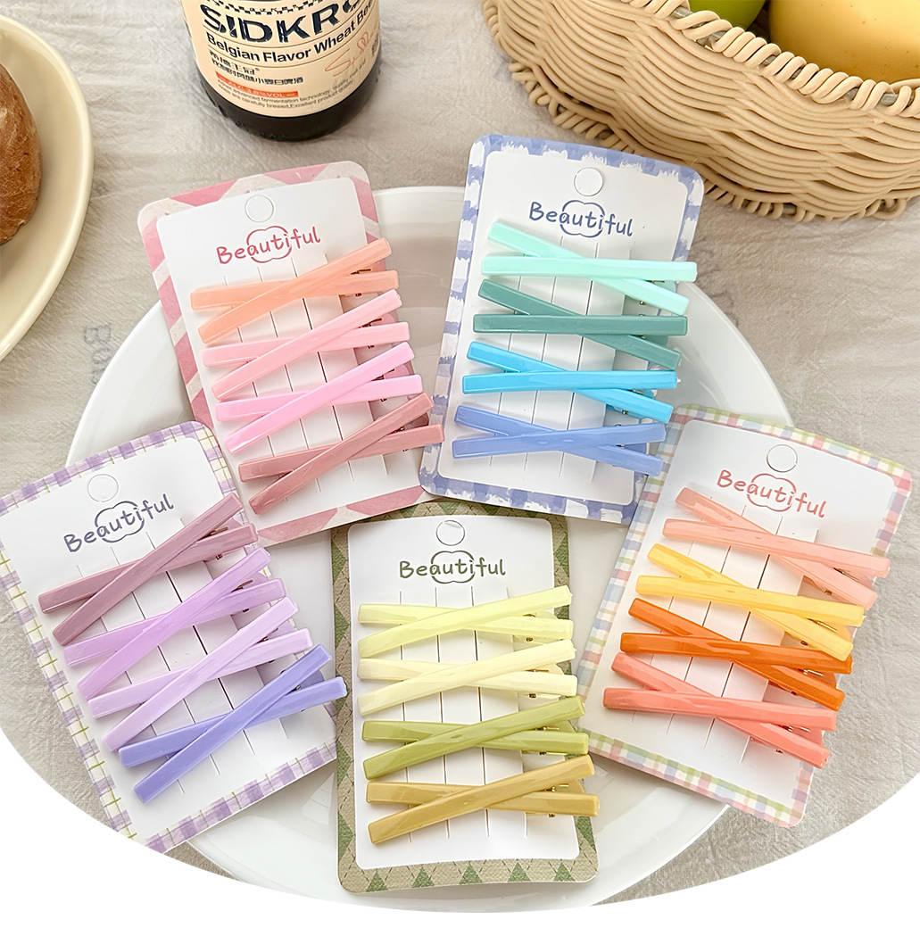 달콤한 젤리 컬러 크로스 앞머리 클립 이마 깨진 머리핀 사이드 클립 귀여운 덕빌 클립 소녀 올 매치 스타일링 클립스토어 가기