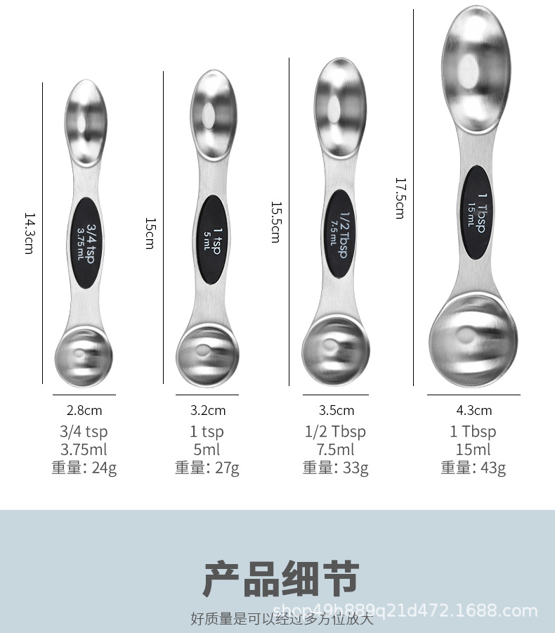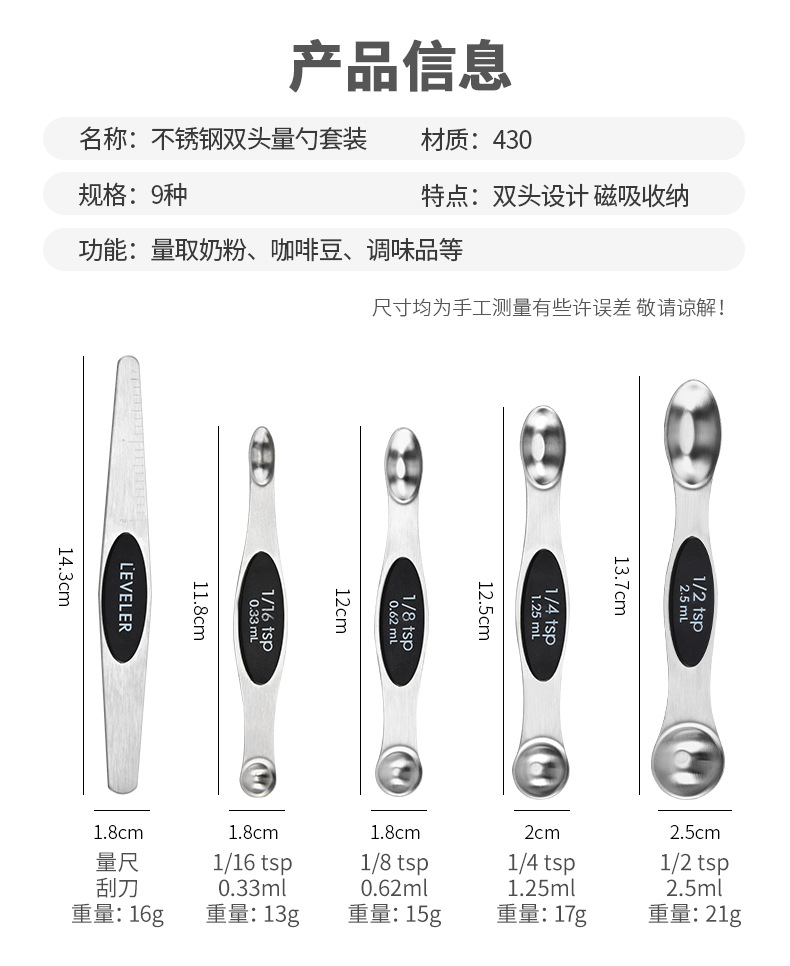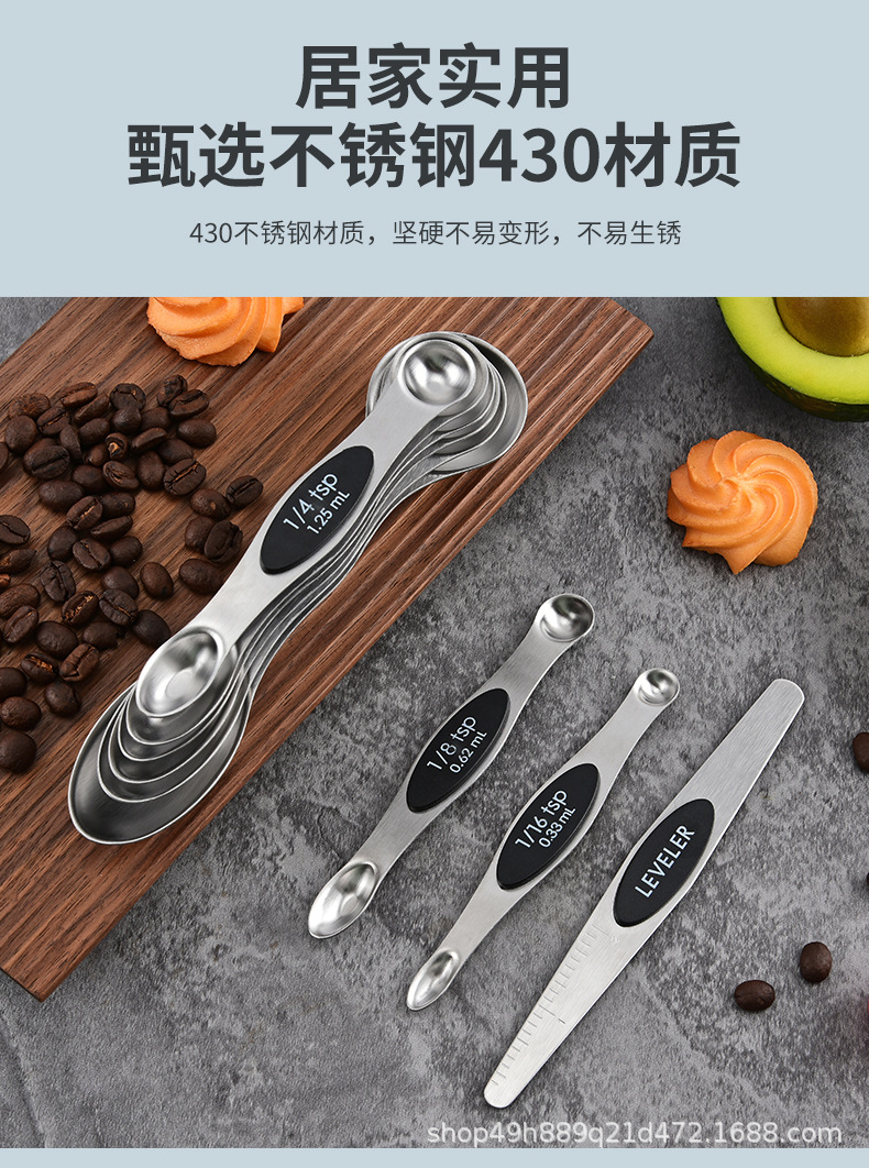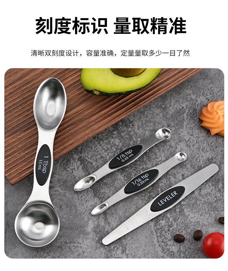 자석식 양면 계량스푼 베이킹 도구 스테인리스 자석식 양면 계량스푼 눈금자 계량스푼 커피용