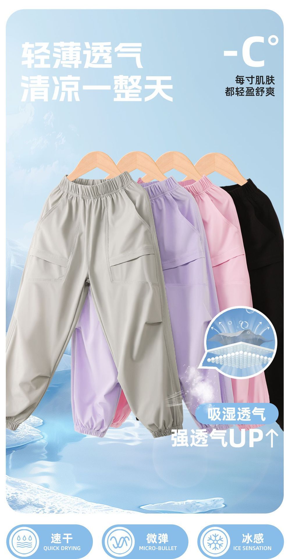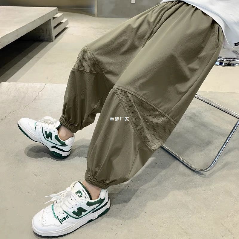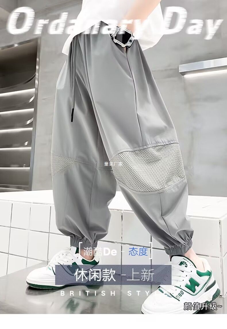 남학생과 여학생을 위한 새로운 여름 얇은 바지, 새로운 중대형 아동용 루즈 팬츠, 아동용 속건성 바지, 캐주얼 작업복 바지
