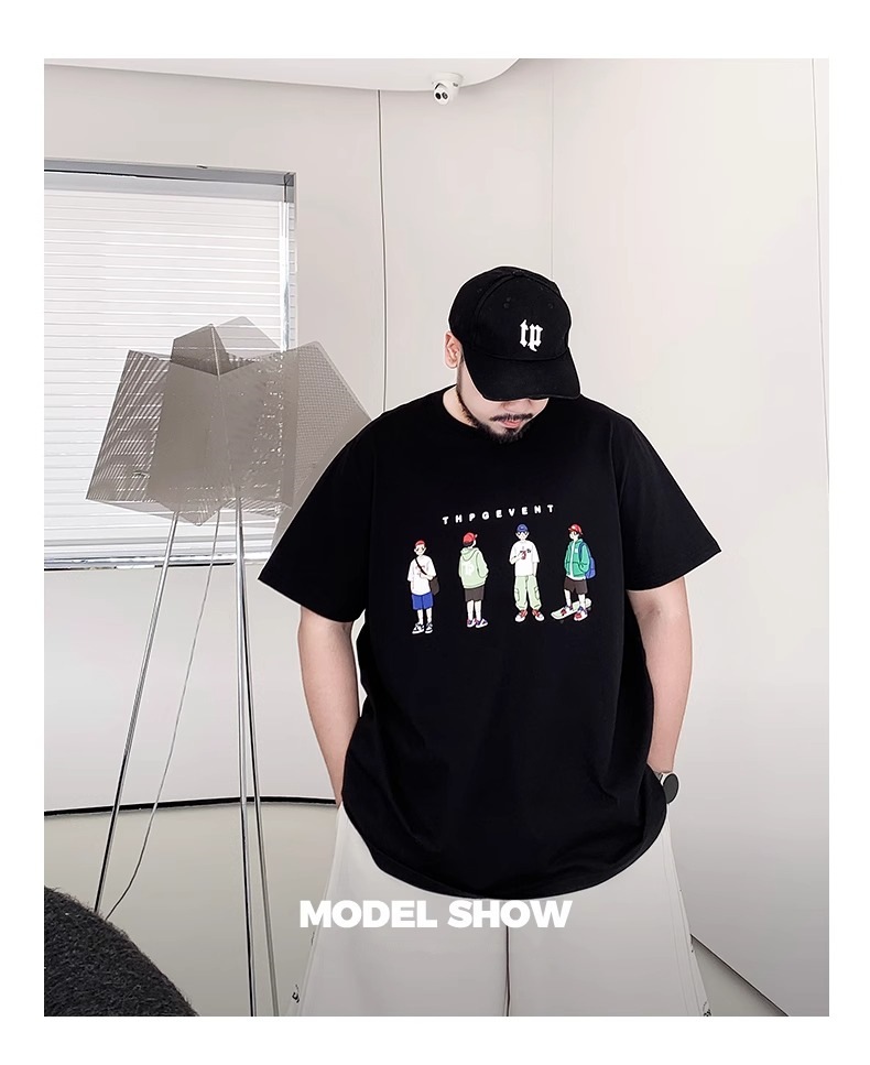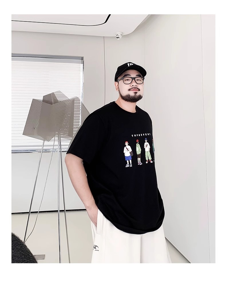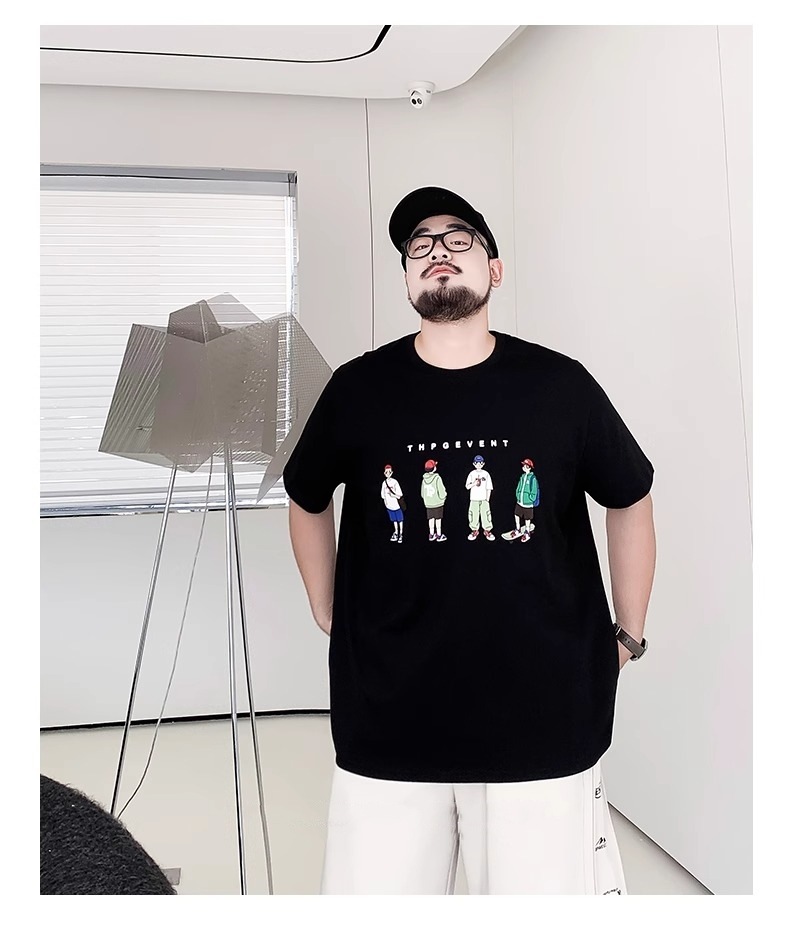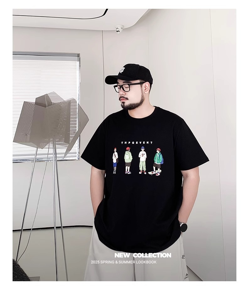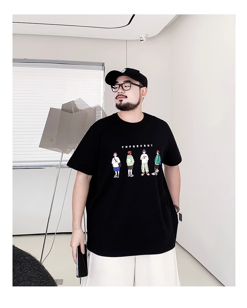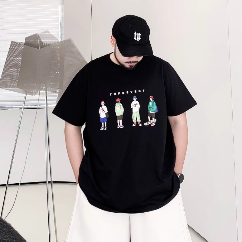 팬티 만화 프린트 반팔 티셔츠 소년 여름 느슨한 플러스 사이즈 잘 생긴 간단한 캐주얼 퓨어 코튼 플러스 비료 플러스 사이즈스토어 가기