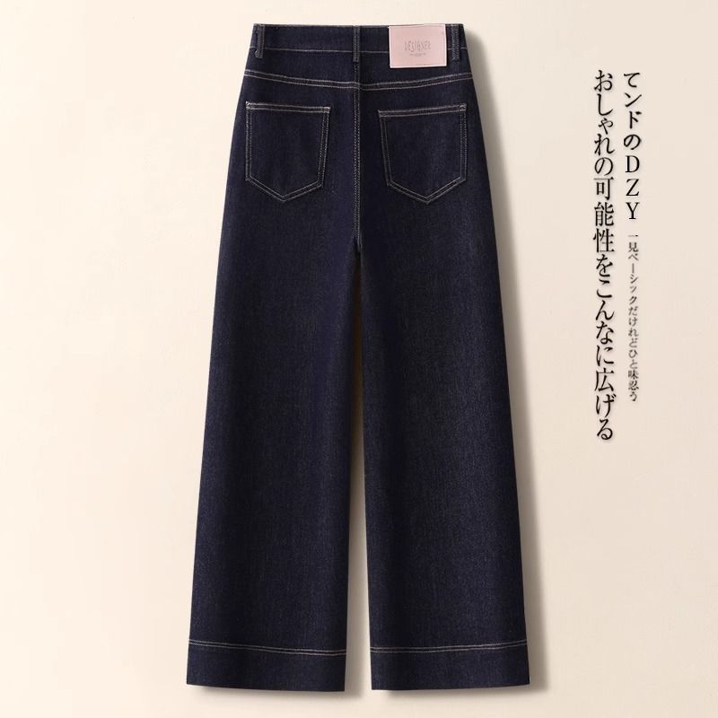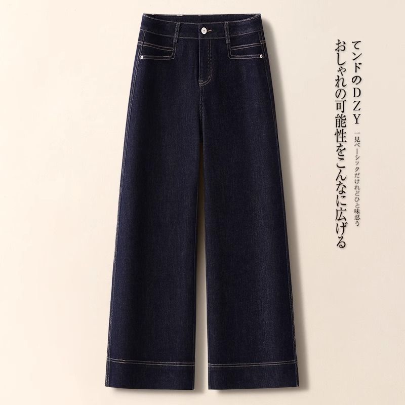 슬리밍 작은 다크 블루 청바지 여자 2025 봄 새로운 올 매치 하이 웨이스트 스트레이트 와이드 레그 키 큰 바지스토어 가기