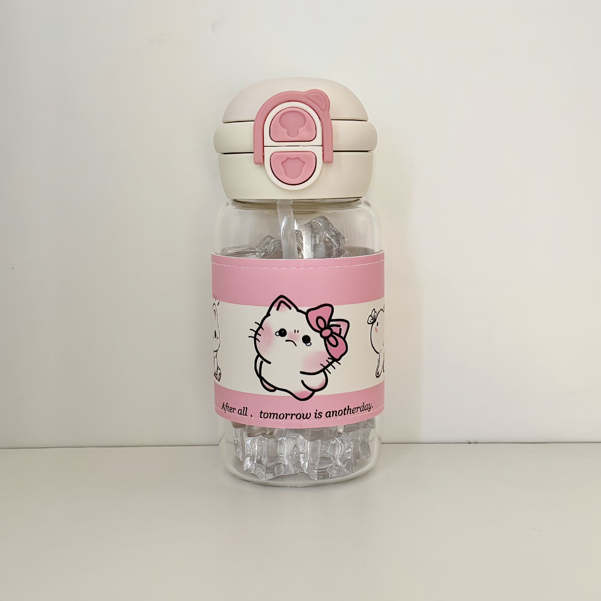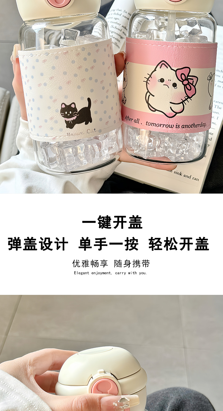 2025 새로운 높은 붕규산 유리 컵 소녀 높은 색상 값 더블 음료 휴대용 작은 컵 학생 sippy 컵