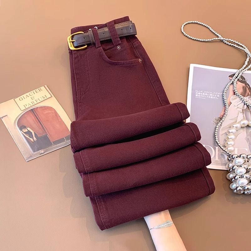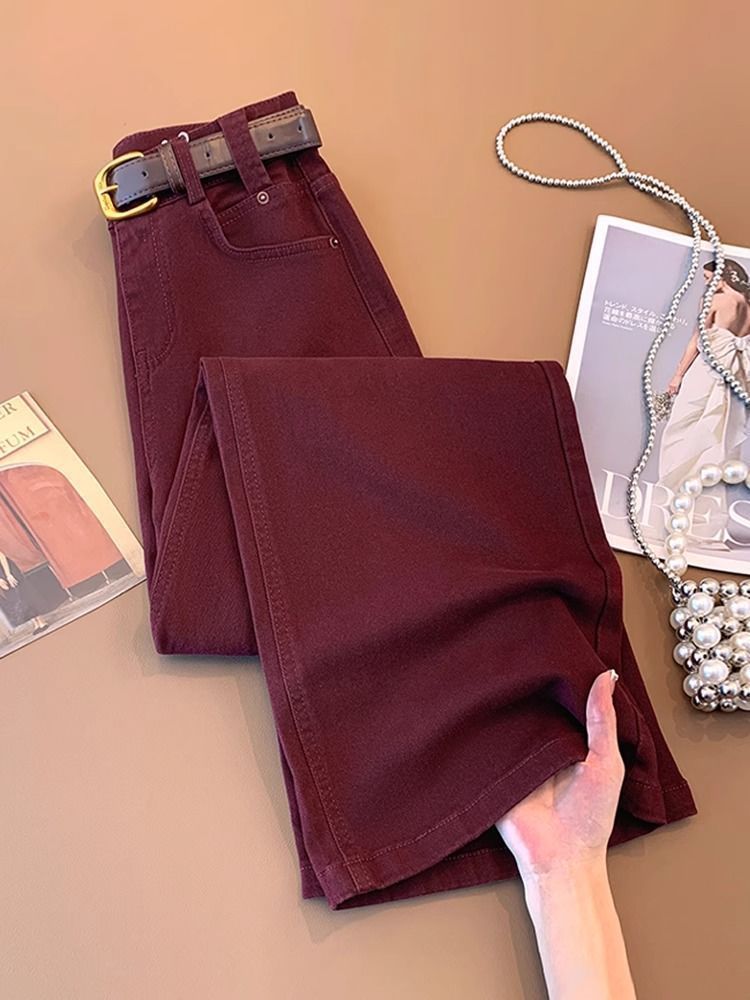 Ankora Red Explosive 좁은 넓은 다리 청바지 여성의 2025 봄 새로운 높은 허리 슬리밍 캐주얼 바지 스트레이트 다리 바지스토어 가기