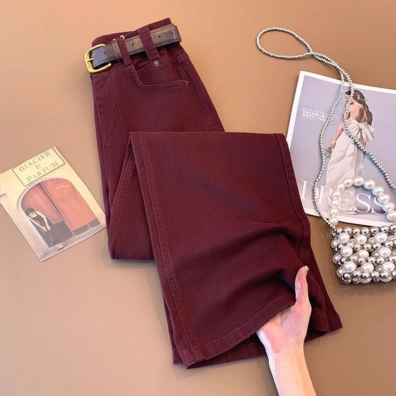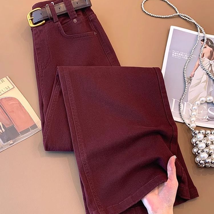 Ankora Red Explosive 좁은 넓은 다리 청바지 여성의 2025 봄 새로운 높은 허리 슬리밍 캐주얼 바지 스트레이트 다리 바지