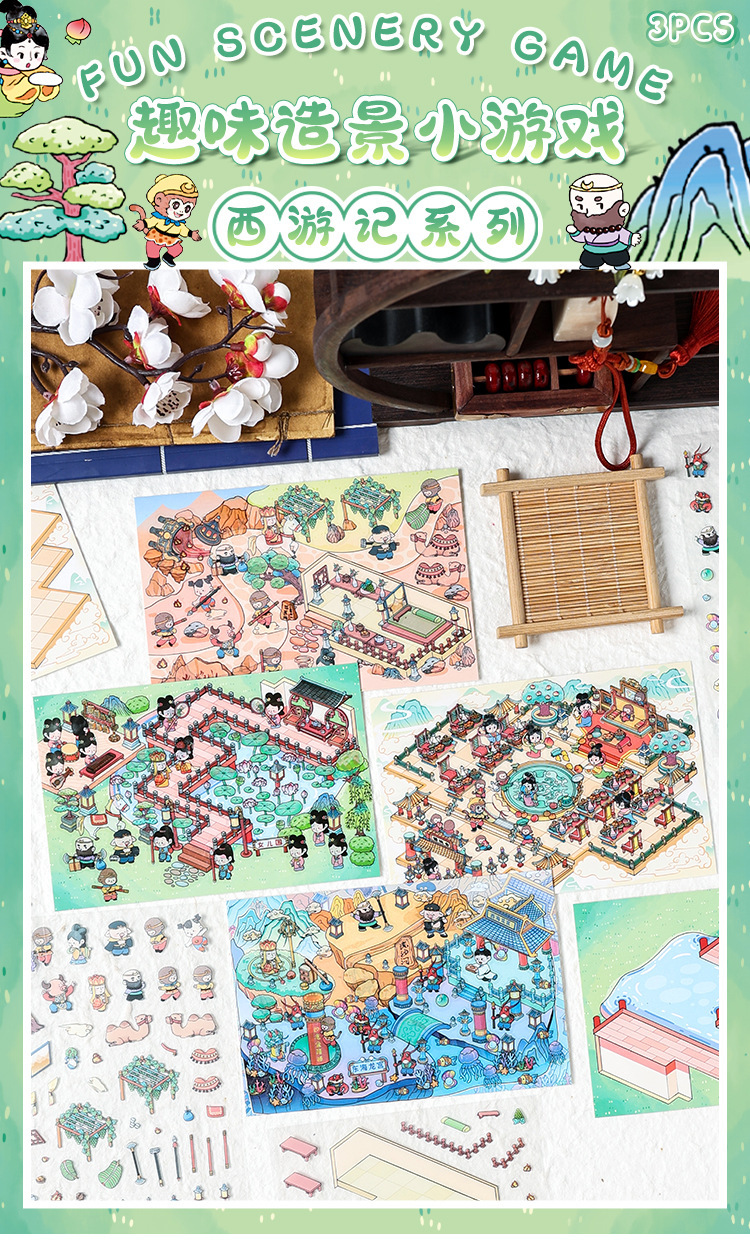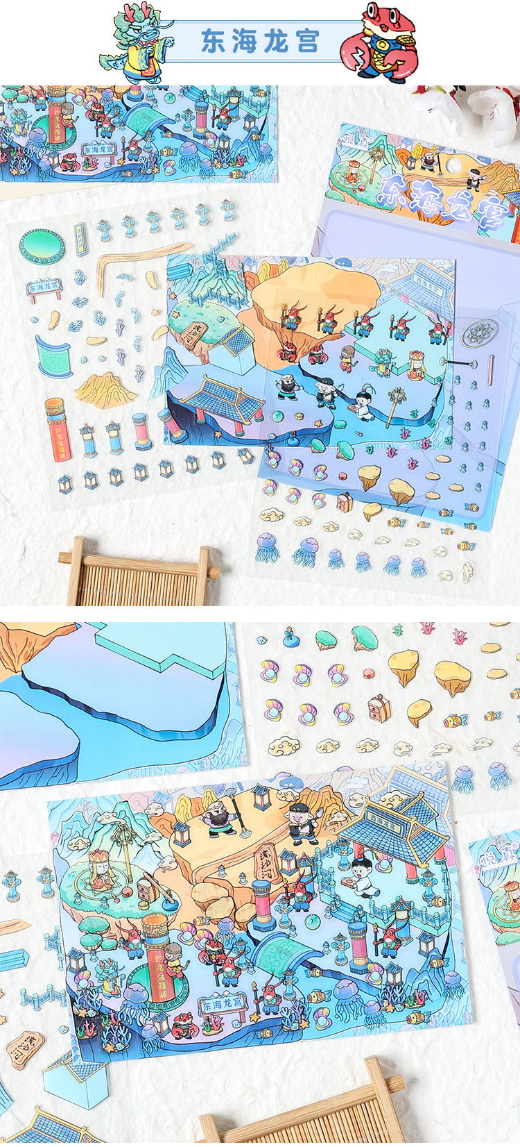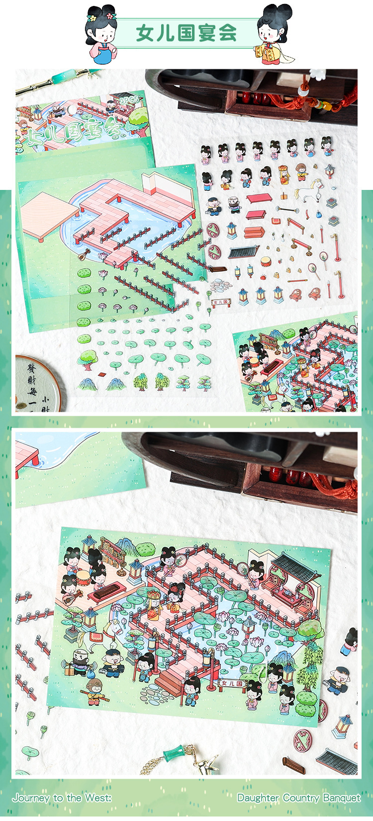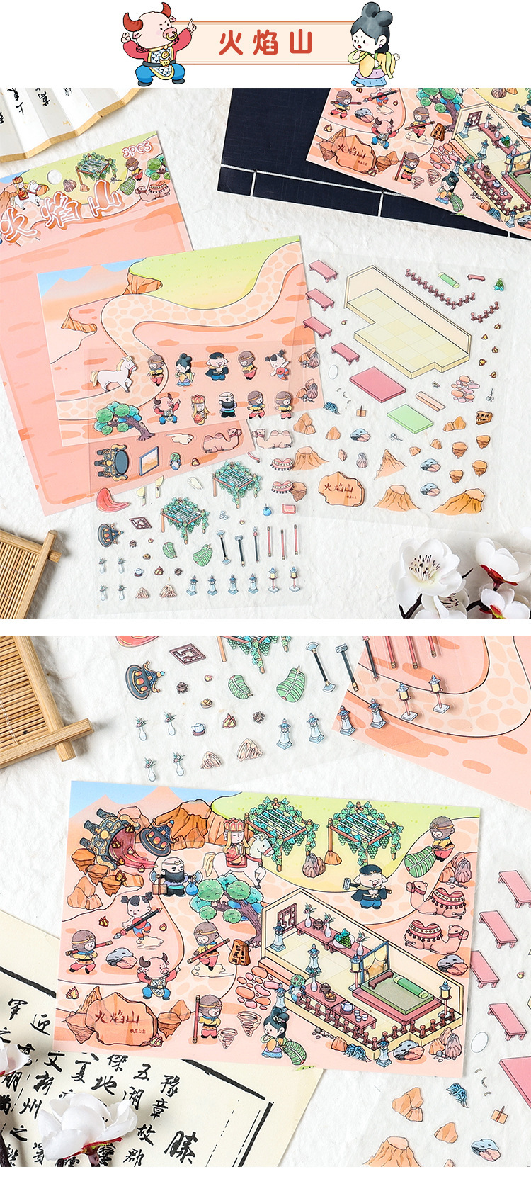 웨스트 시리즈 재미있는 풍경 게임 스티커 3D 스테레오 마이크로 스케일 장면 핸드북 장식 콜라주 스티커 여행