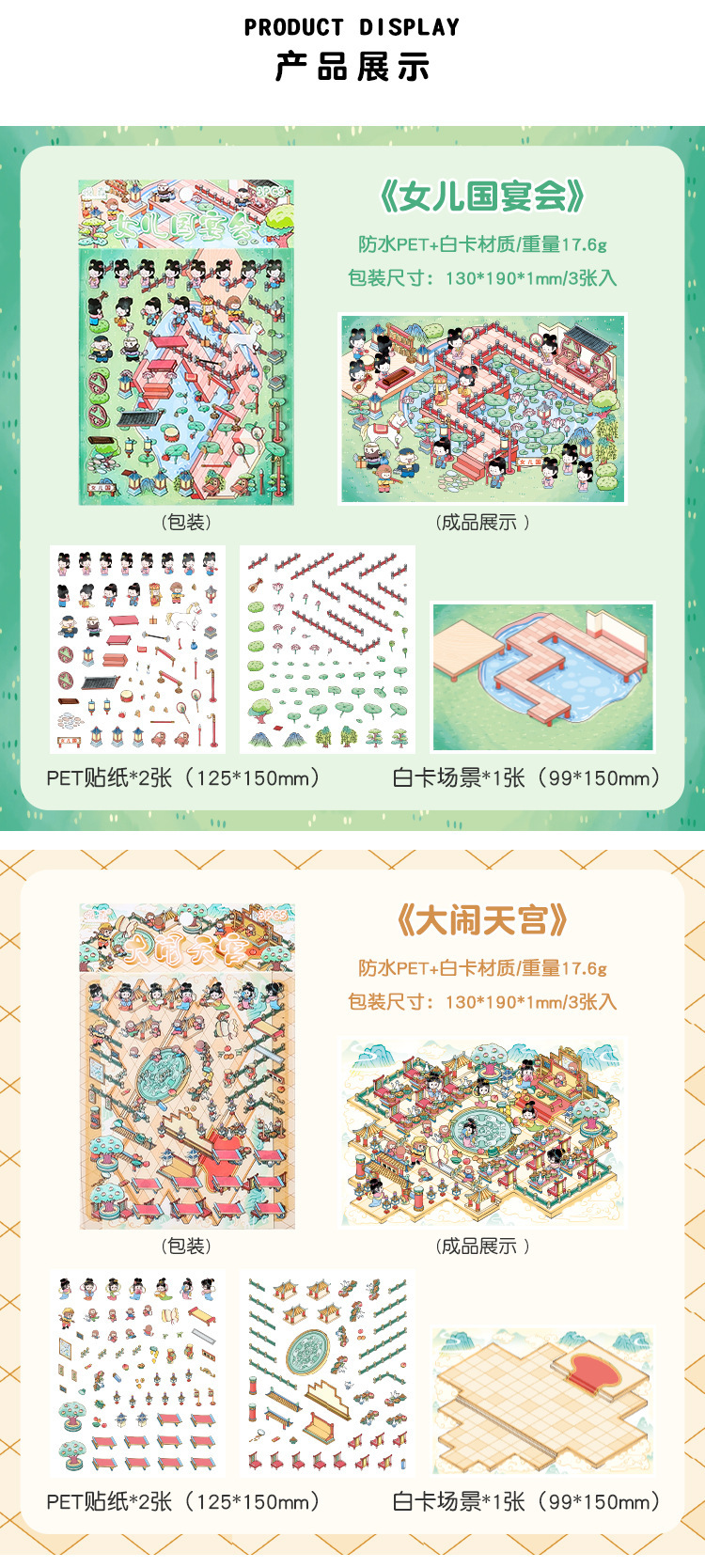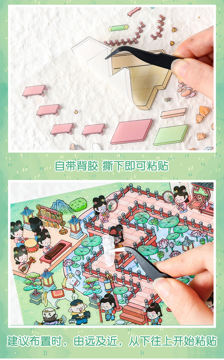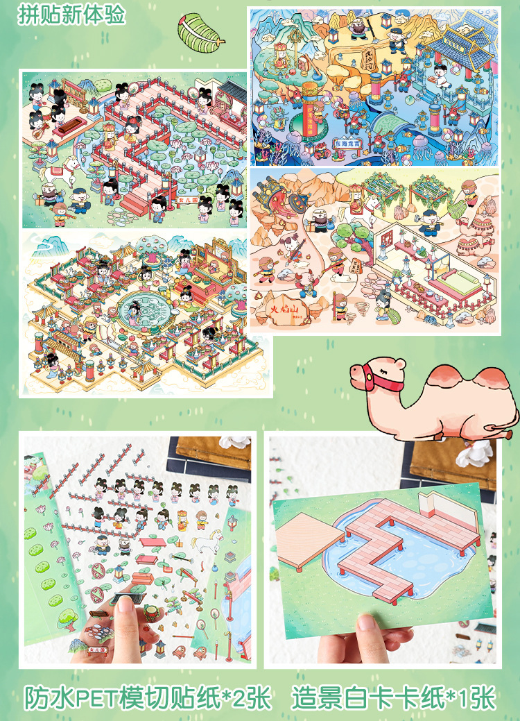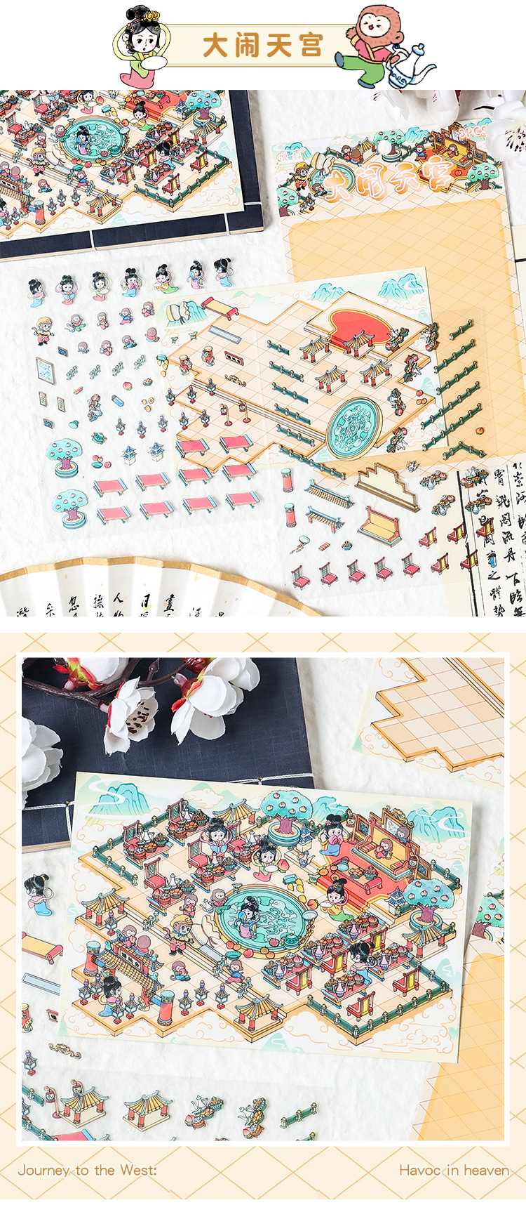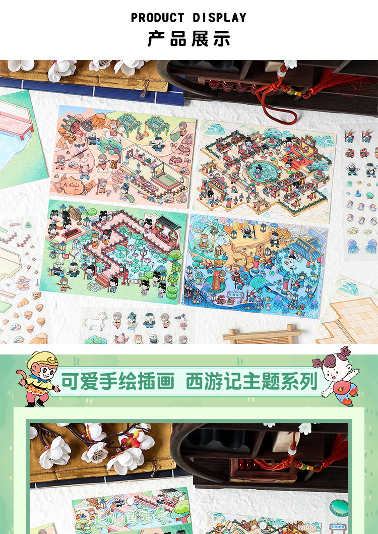 웨스트 시리즈 재미있는 풍경 게임 스티커 3D 스테레오 마이크로 스케일 장면 핸드북 장식 콜라주 스티커 여행
