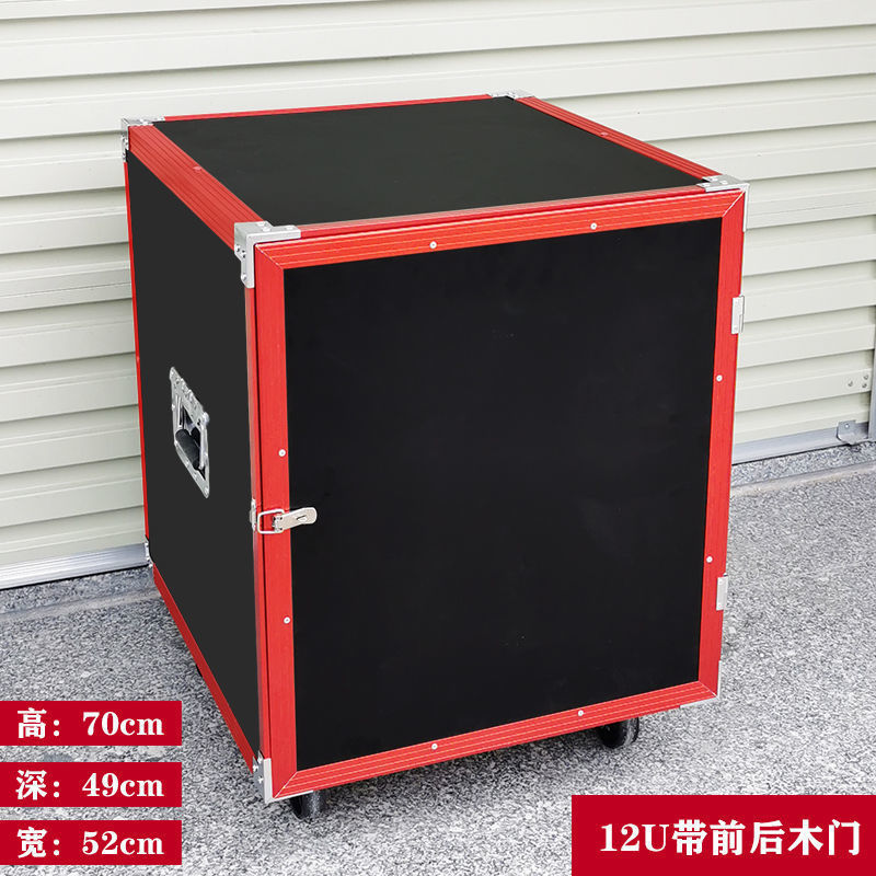 • 12U 빨간색 알루미늄 캐비닛 브레이크 휠 + 전면 및 후면 목재 도어