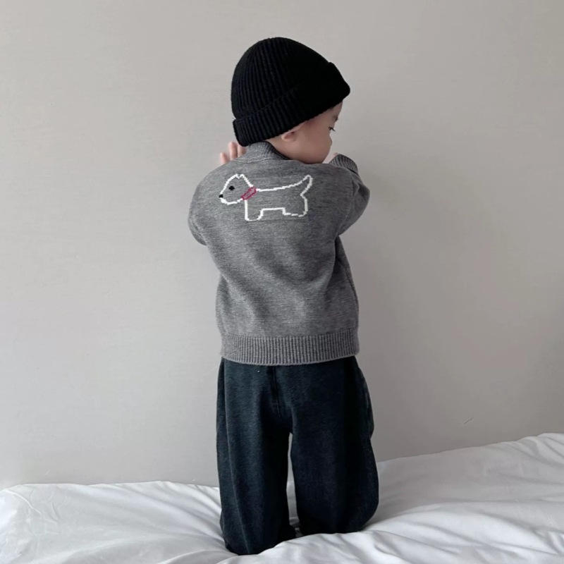 소년 2025 봄 니트 만화 카디건 스웨터 강아지 새 스타일 최고 유행 스웨터 코트 소년 아기스토어 가기