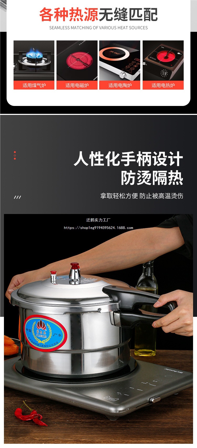 압력 쿠커 가정용 가스 유도 쿠커 일반 상업용 방폭 이중 목적 이중 바닥 두꺼운 대용량 압력 쿠커