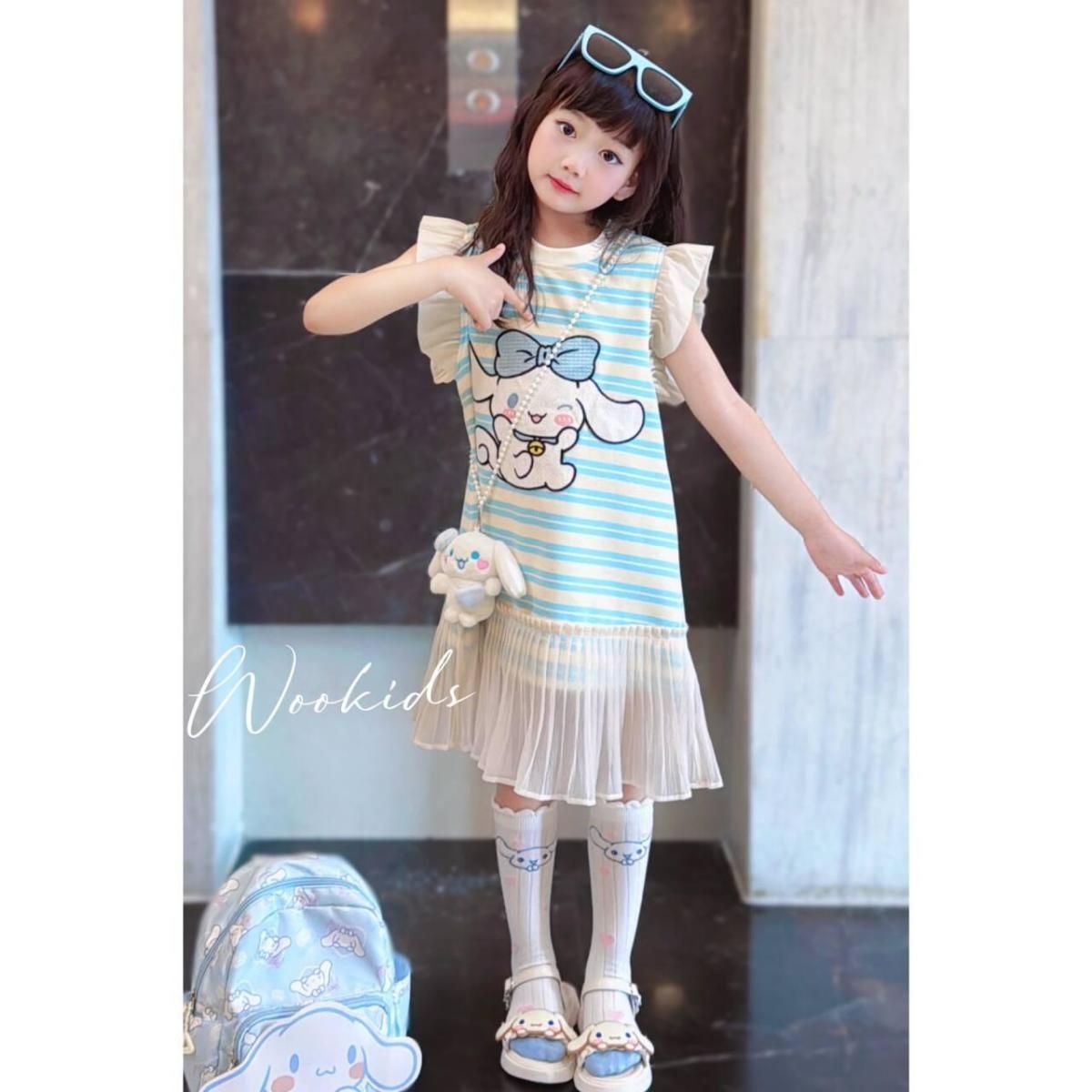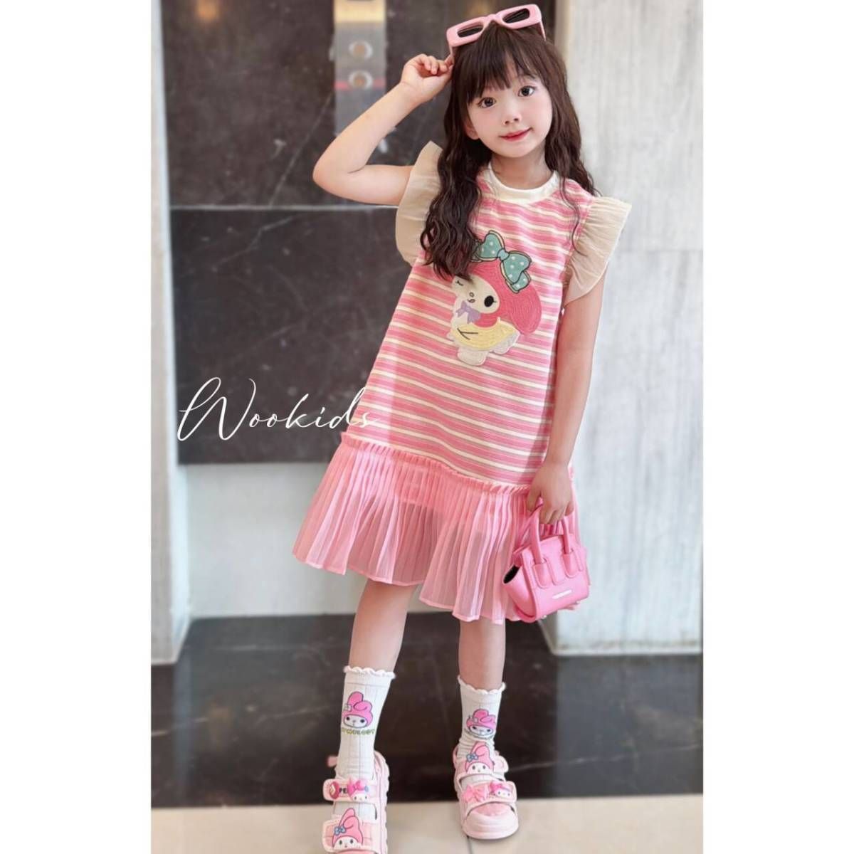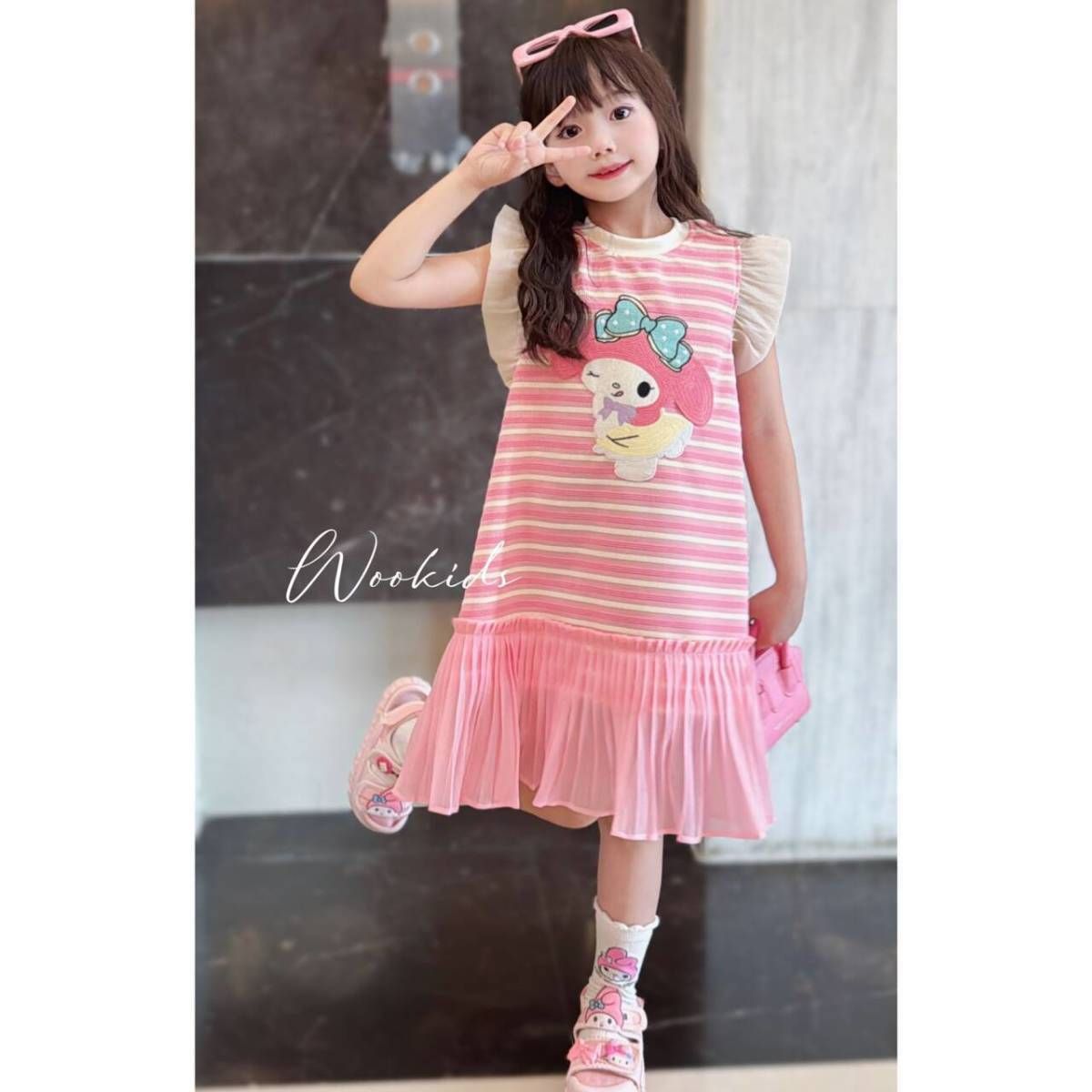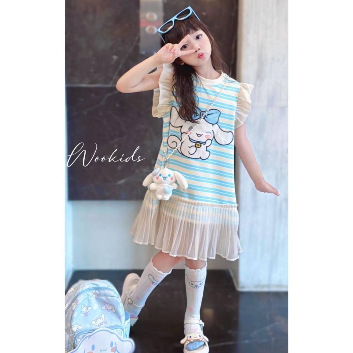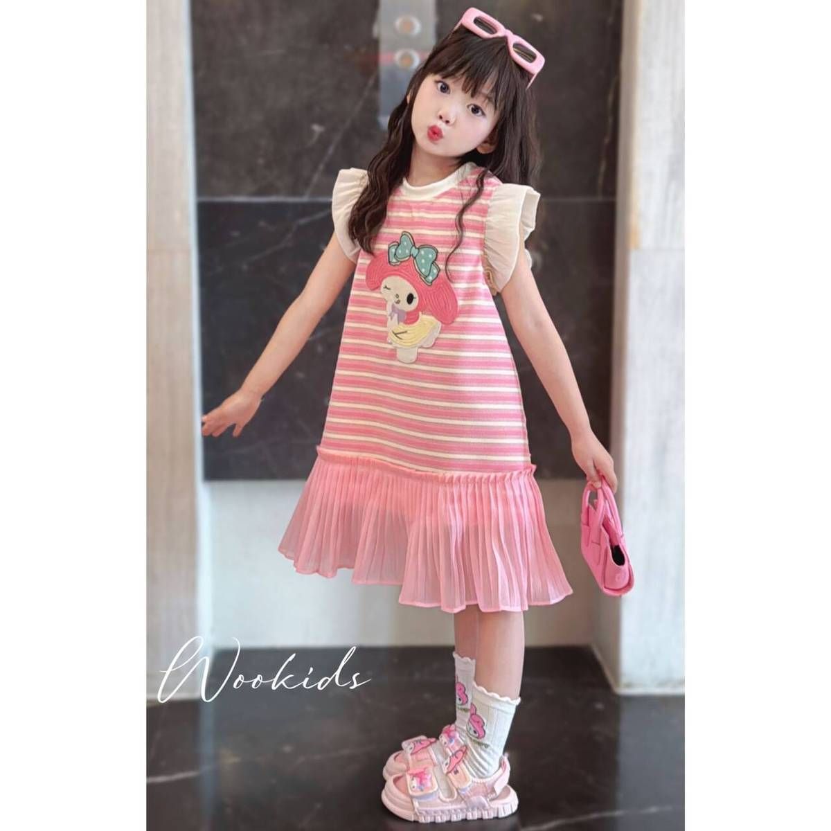 한국 스타일 소녀 만화 줄무늬 원피스 큰 키즈 여름 새로운 단색 신선한 민소매 조끼 공주 원피스 트렌디스토어 가기