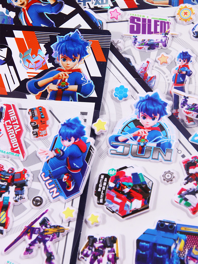 정품 눈부신 카드 전투기 3 차원 거품 스티커 소년 변압기 자동차 스티커 어린이 보상 페이스트 장난감스토어 가기