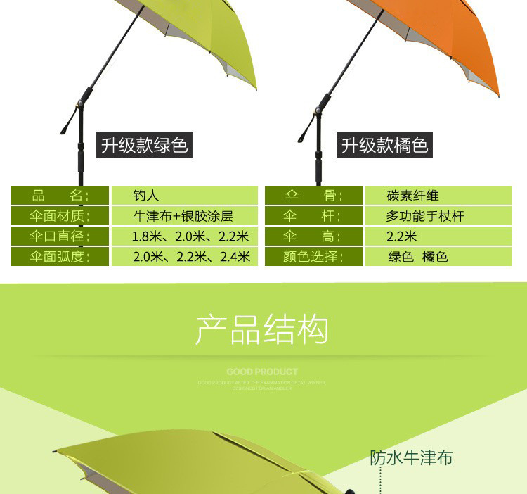 • 2.0m 녹색 은색 플라스틱 범용 우산 다중 각도 조향