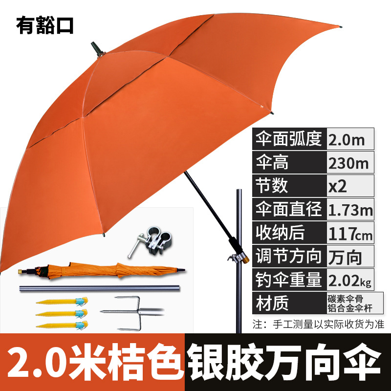 • 2.0m 오렌지 실버 플라스틱 범용 우산 다중 각도 조향