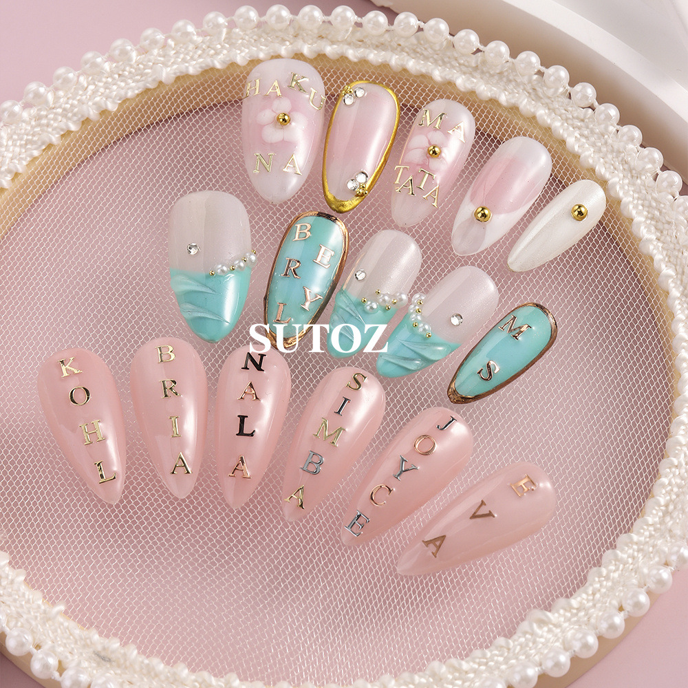 2025 국경 새로운 네일 아트 컴퓨터 태블릿 달콤한 멋진 3 차원 영어 문자 스틸 볼 플랫 드릴 네일 DIY 액세서리스토어 가기