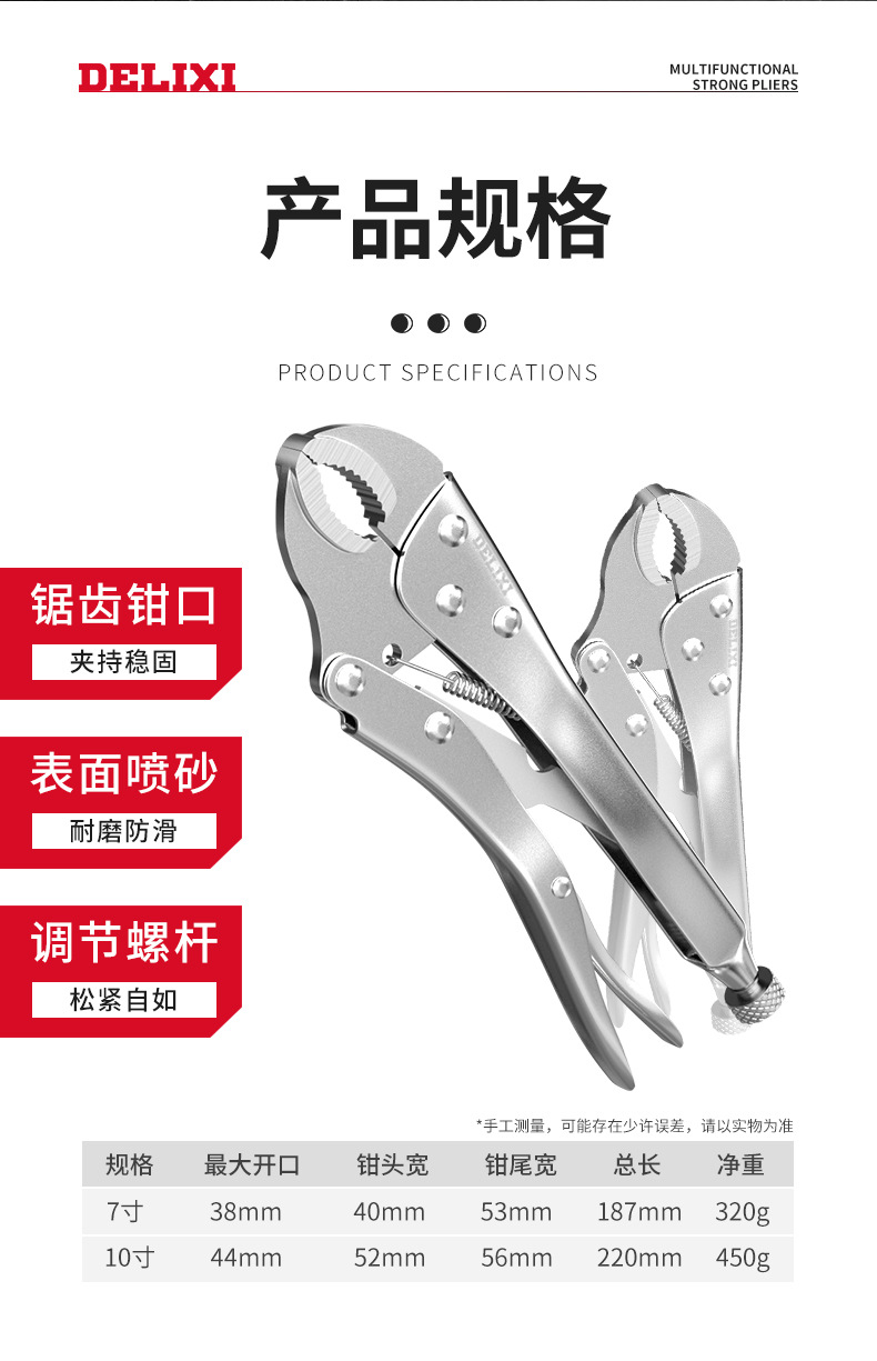 Delixi Dali 플라이어 렌치 다기능 압력 플라이어 클램프 고정 된 수도관 펜치 하드웨어 도구