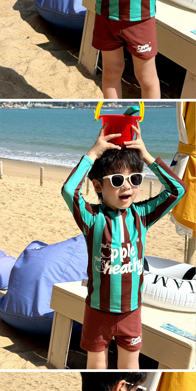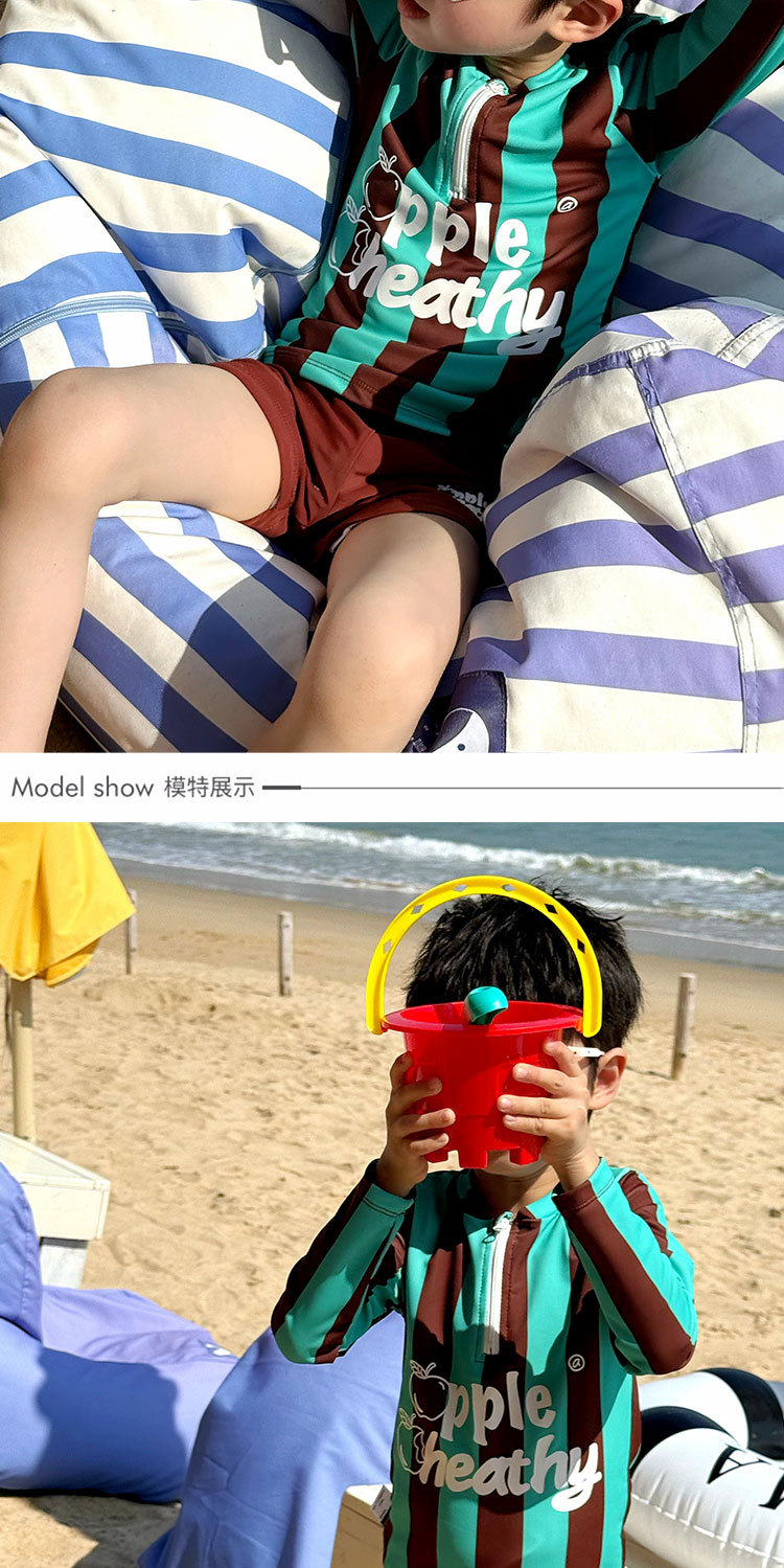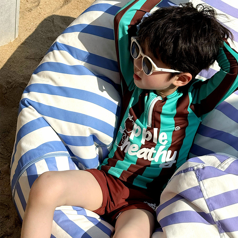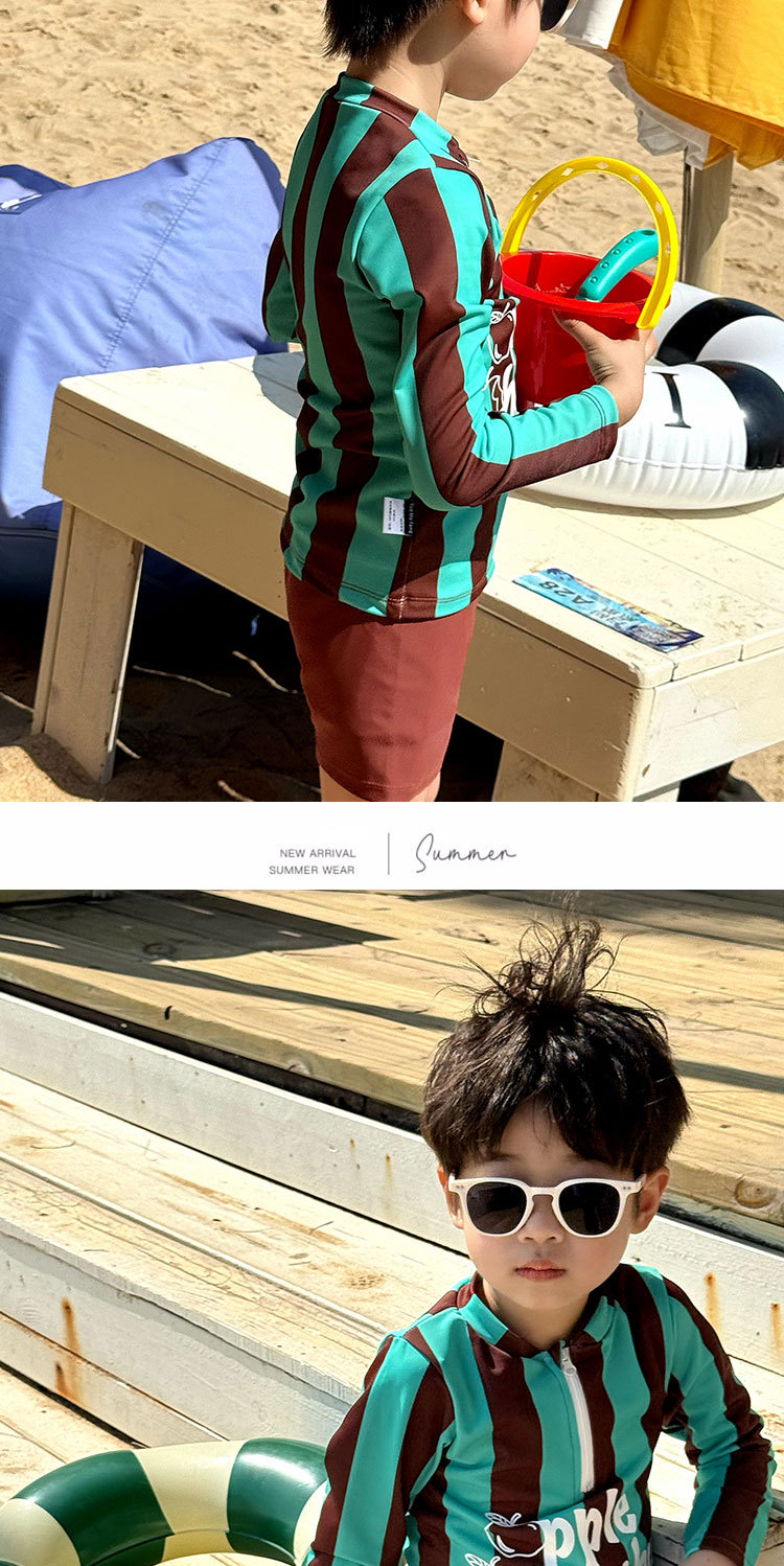 새로운 어린이 수영복 소년과 소녀 아기 긴 소매 태양 보호 수영복 세트 스트라이프 컬러 대조 패션 뜨거운 봄 휴일 수영복스토어 가기