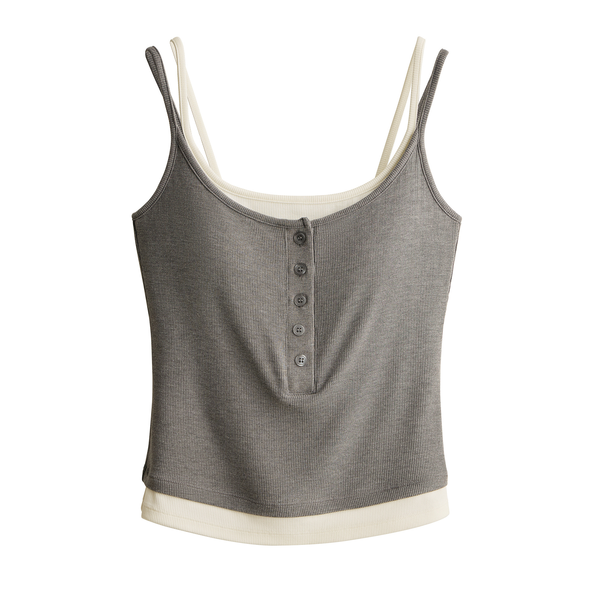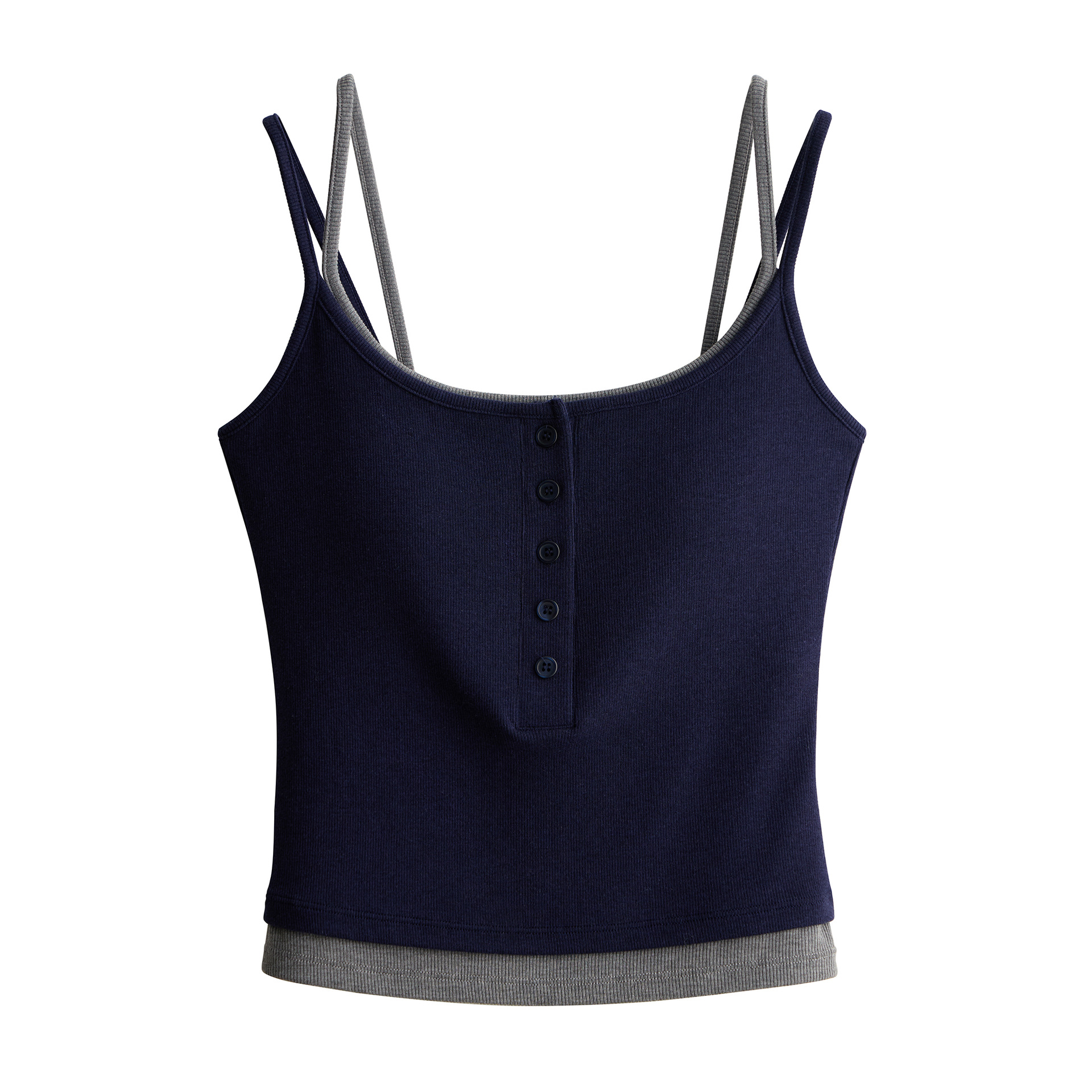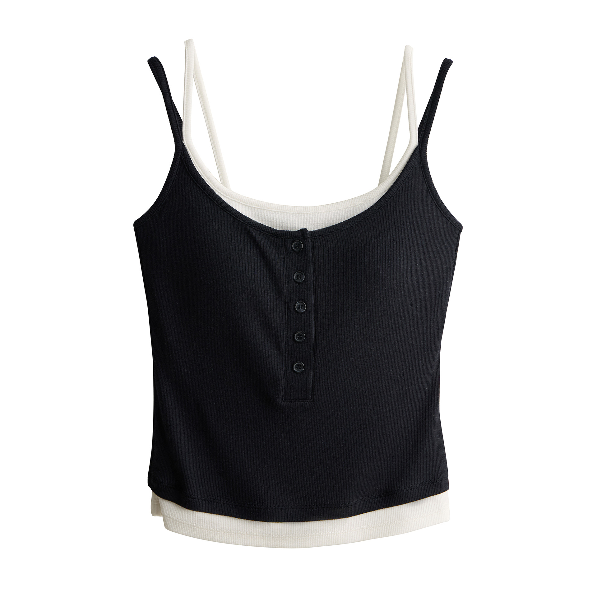 비 브래지어 가짜 투피스 콘트라스트 핏 버튼 실크 스타 스판덱스 카미솔 슬림 핏 여성 인/tb8895