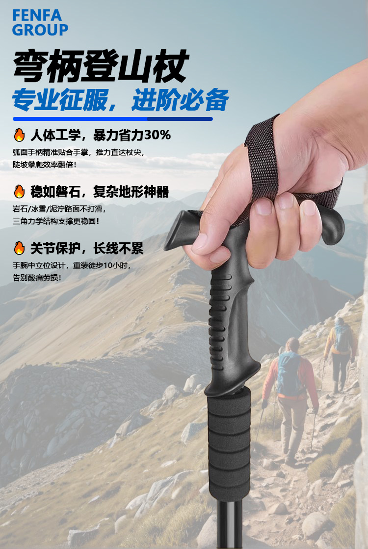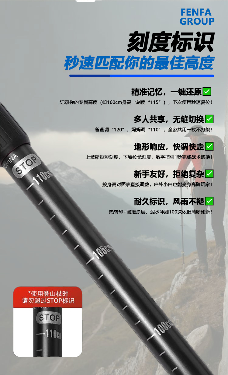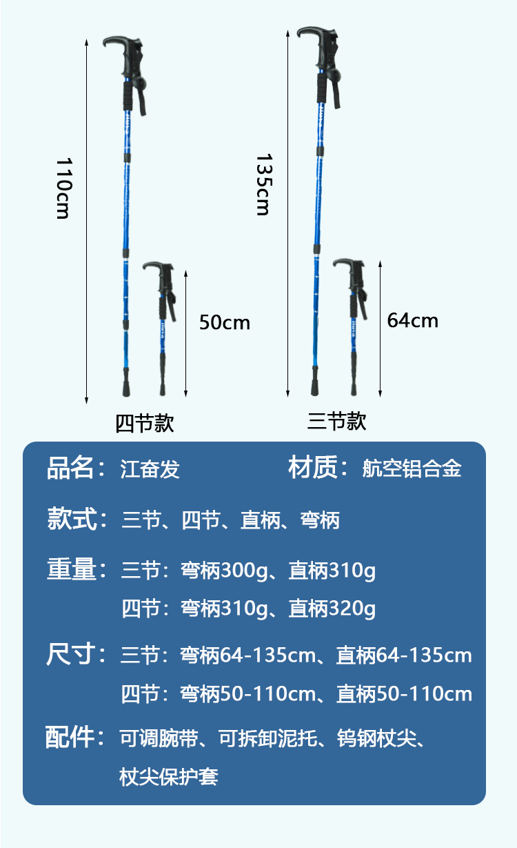 Jiangfenghua 야외 트레킹 스틱 여행 등산 조절 가능한 텔레스코픽 스틱 하이킹 크로스 컨트리 스트레이트 핸들 4 섹션 초경량스토어 가기