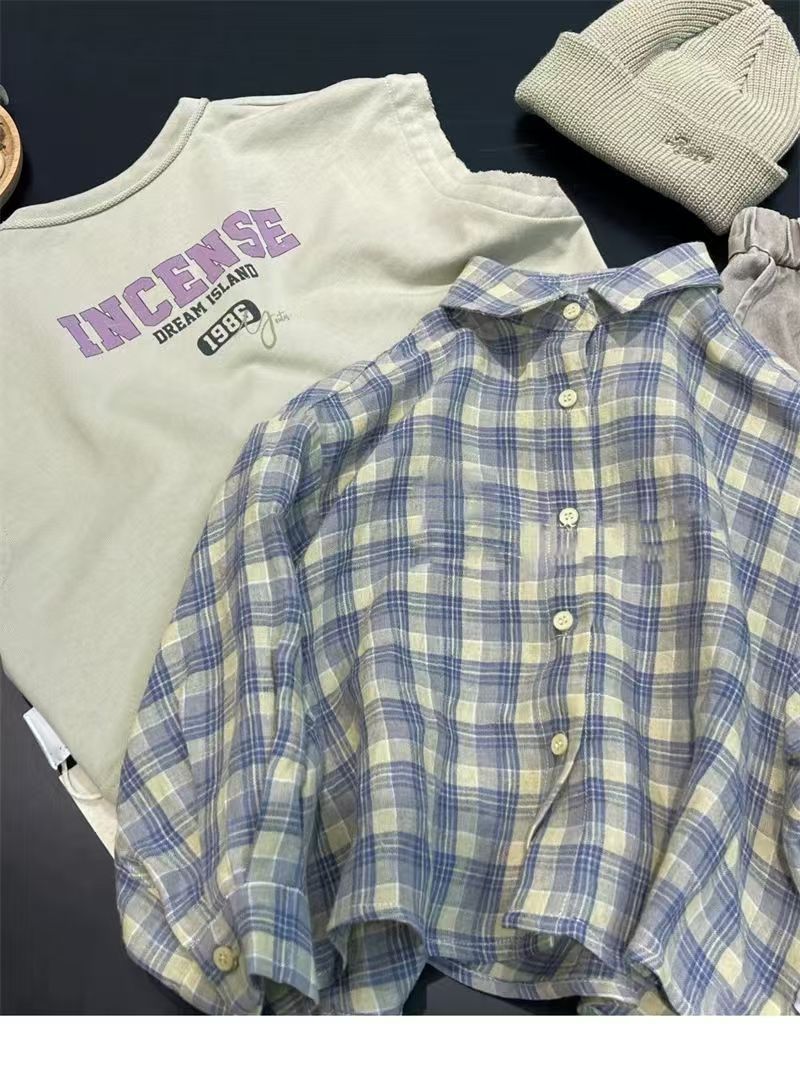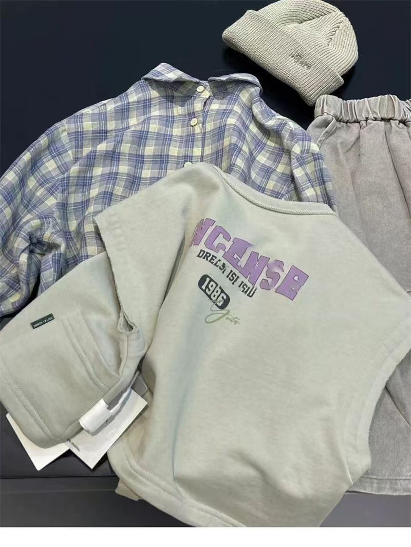 아동복 소년 세트 2025 봄과 가을 서양식 멋진 한국 어린이 유행의 격자 무늬 셔츠 유행 문학 스타일 레저