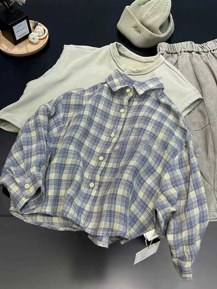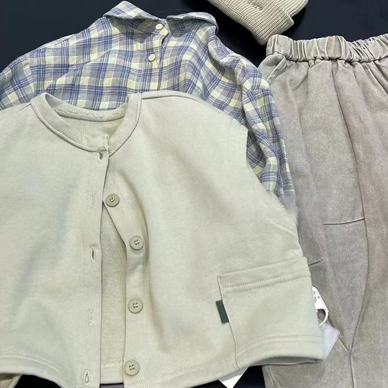 아동복 소년 세트 2025 봄과 가을 서양식 멋진 한국 어린이 유행의 격자 무늬 셔츠 유행 문학 스타일 레저스토어 가기