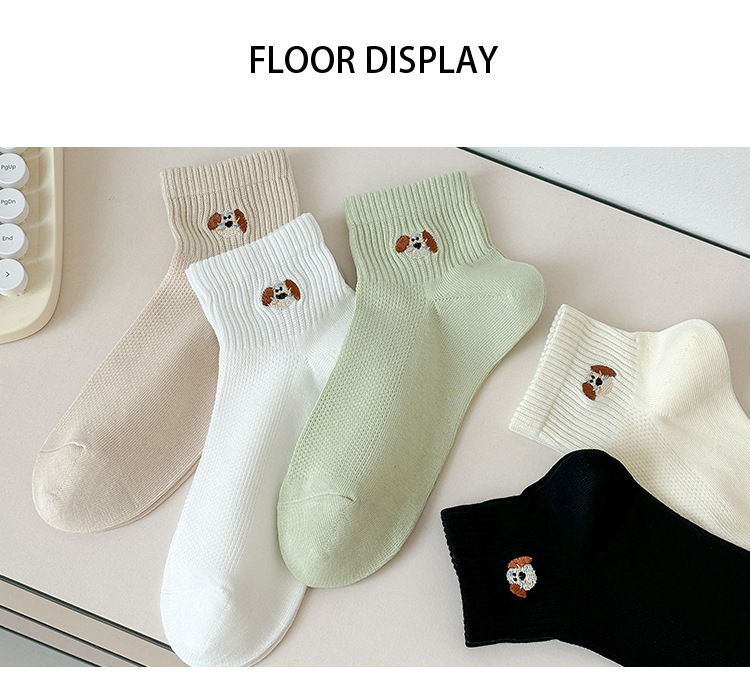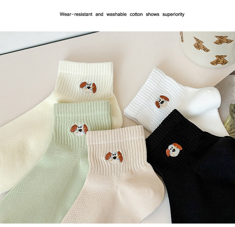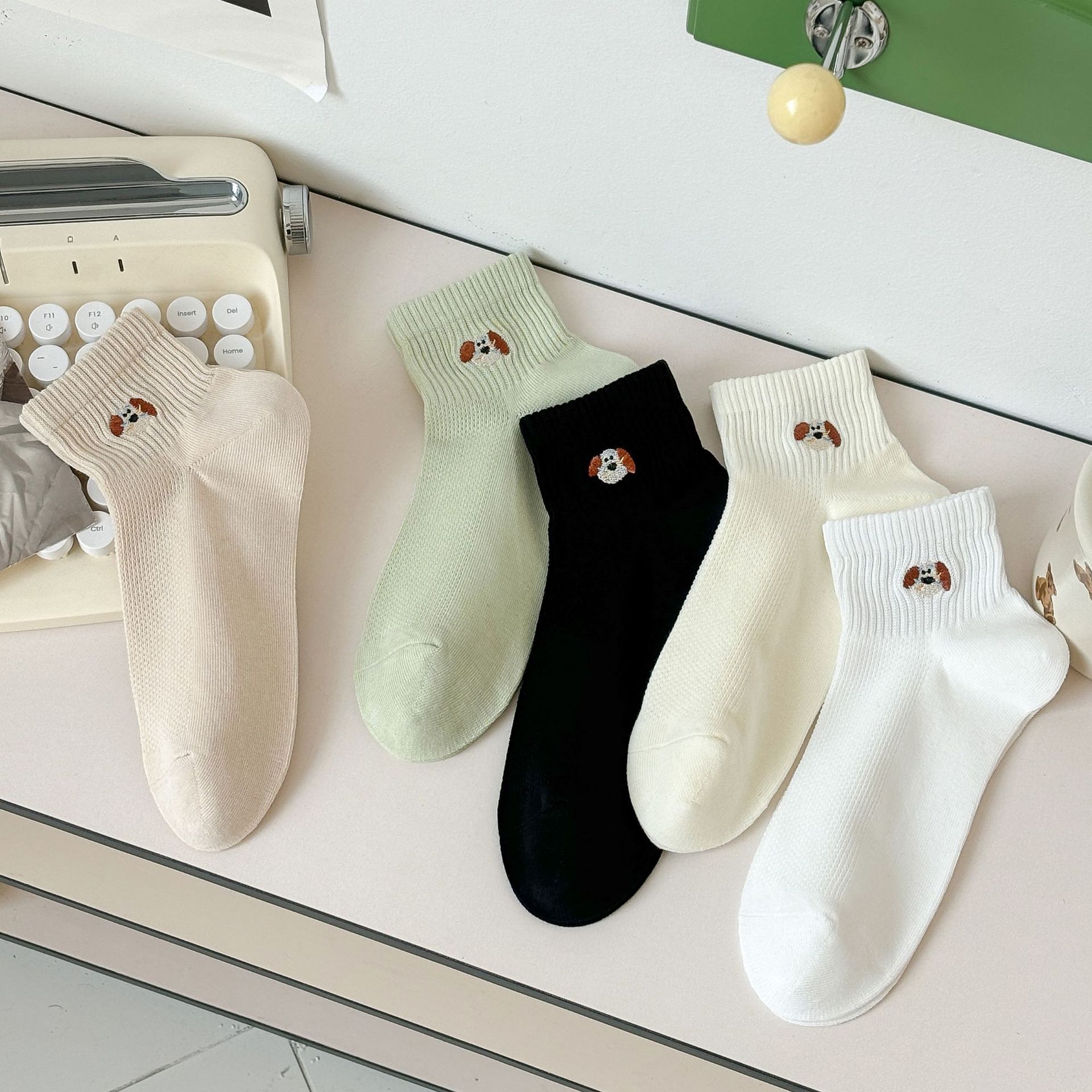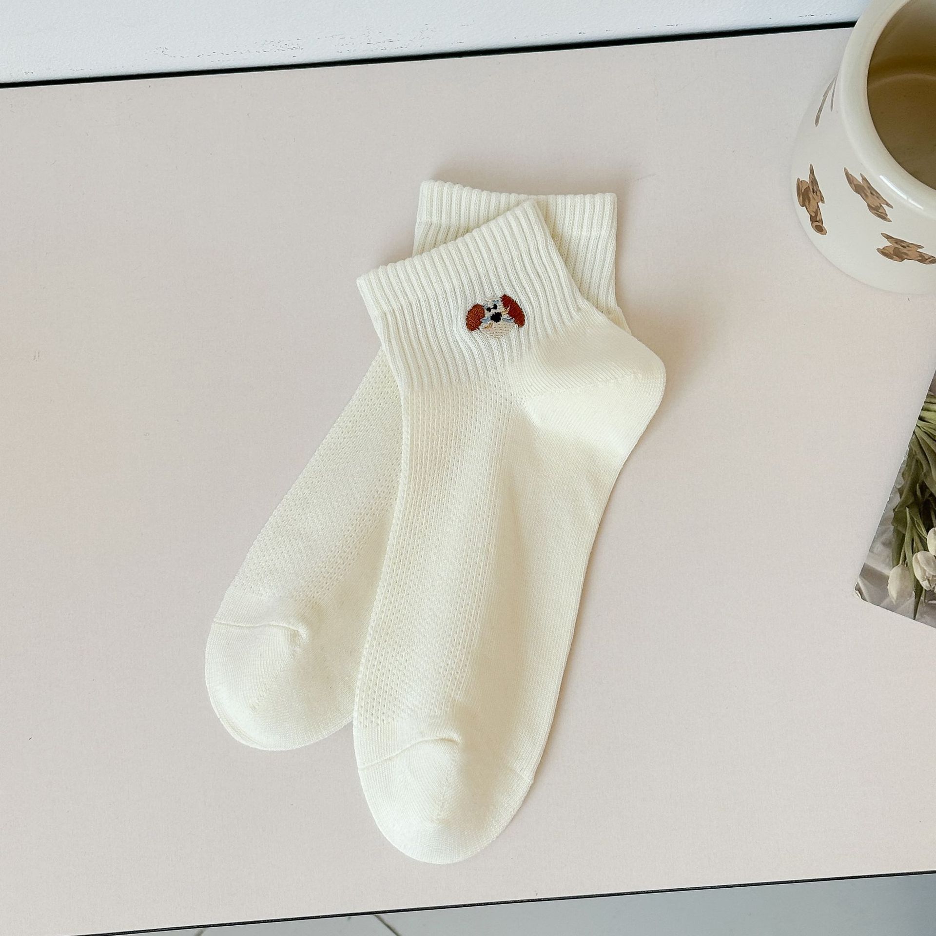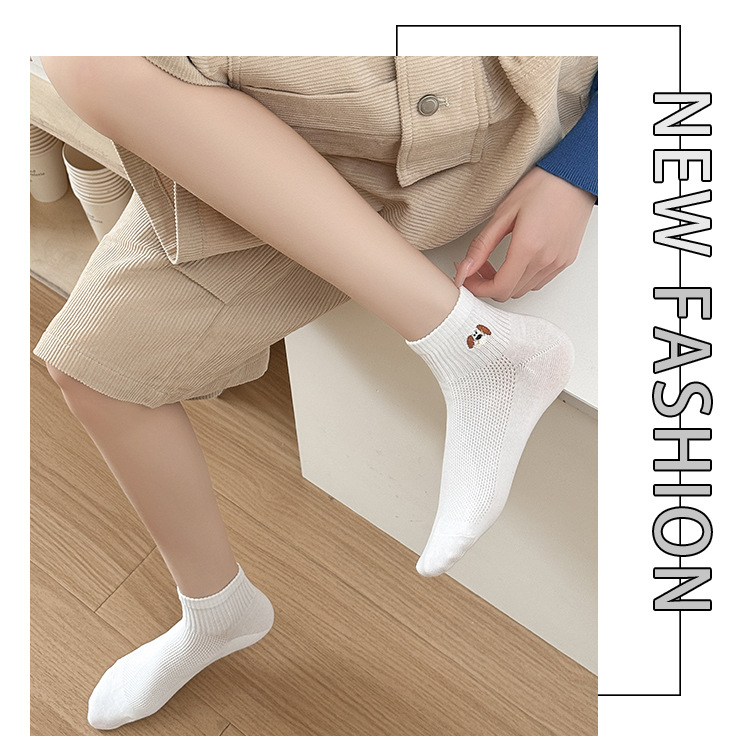 만화 자수 개 보트 양말 여성 여름 중공 메쉬 통기성 양말 순수 면 여성 대학 스타일 짧은 튜브 주지스토어 가기