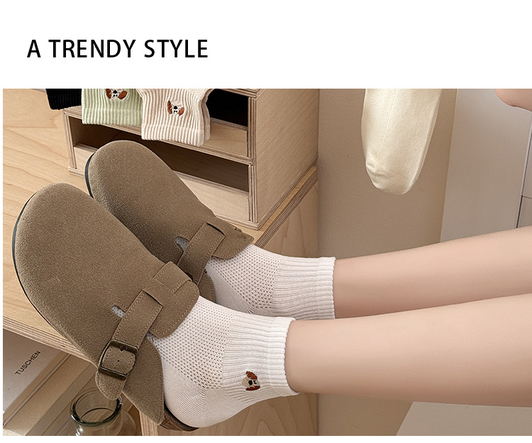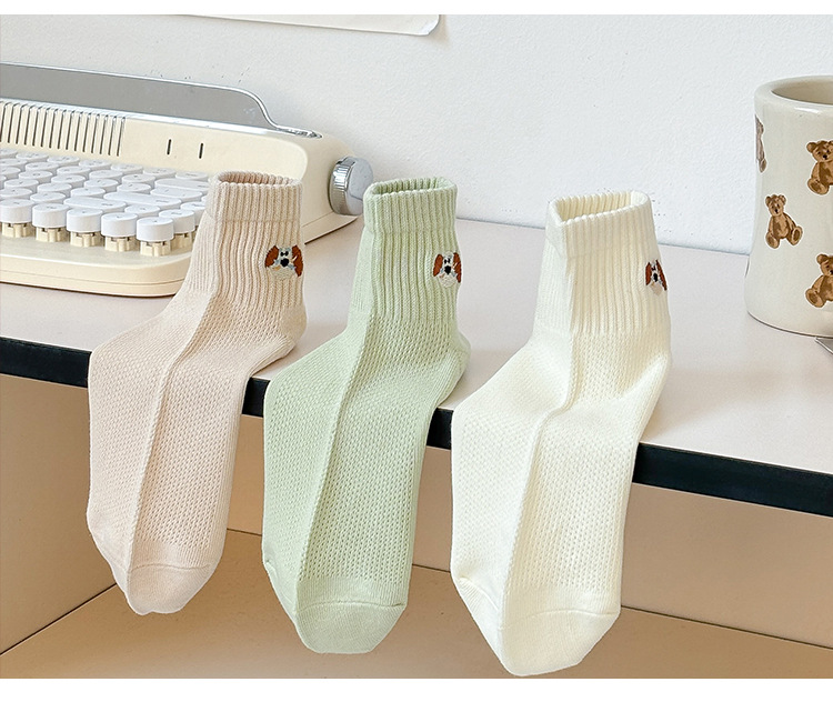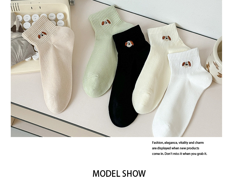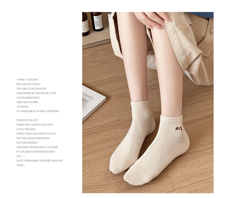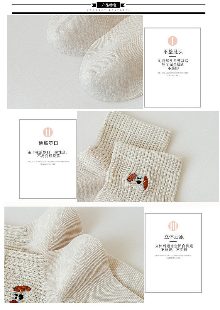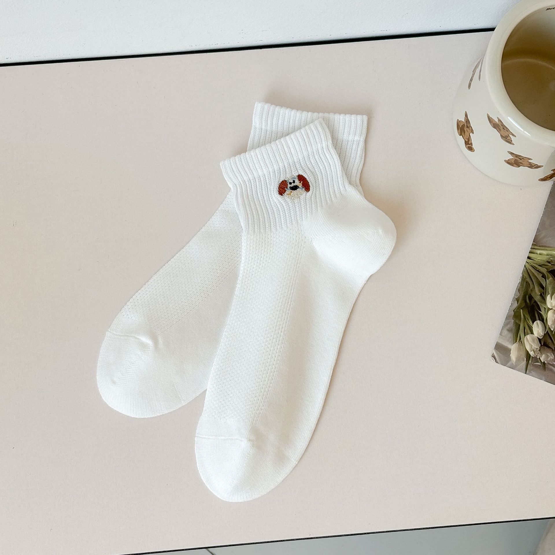 만화 자수 개 보트 양말 여성 여름 중공 메쉬 통기성 양말 순수 면 여성 대학 스타일 짧은 튜브 주지스토어 가기