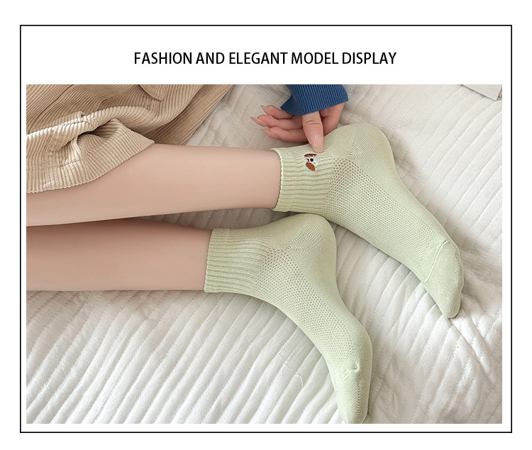 만화 자수 개 보트 양말 여성 여름 중공 메쉬 통기성 양말 순수 면 여성 대학 스타일 짧은 튜브 주지