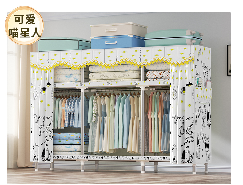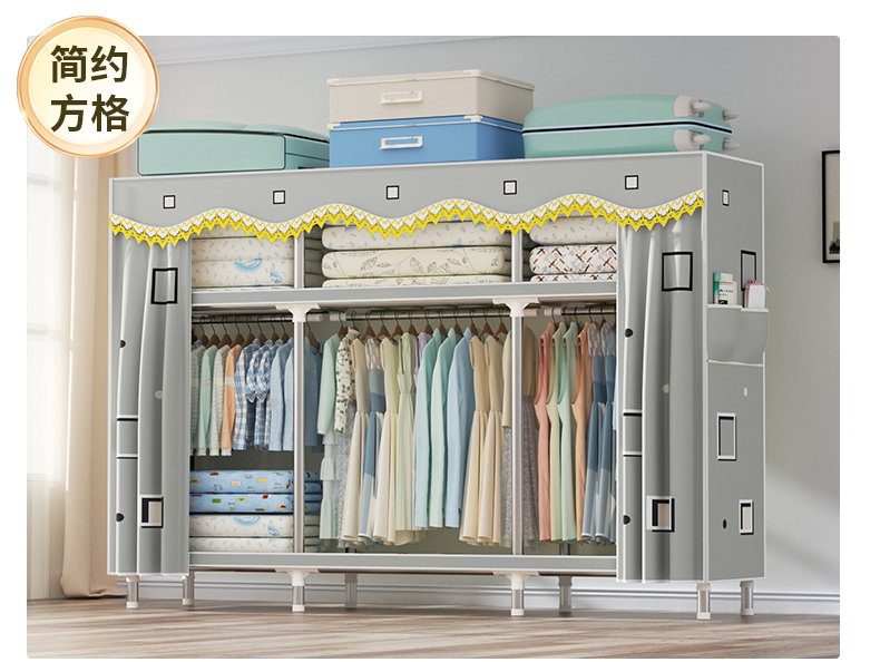 옷장 홈 침실 풀 스틸 프레임 어셈블리 간단한 천 옷장 임대 룸 스토리지 내구성 및 경제적스토어 가기