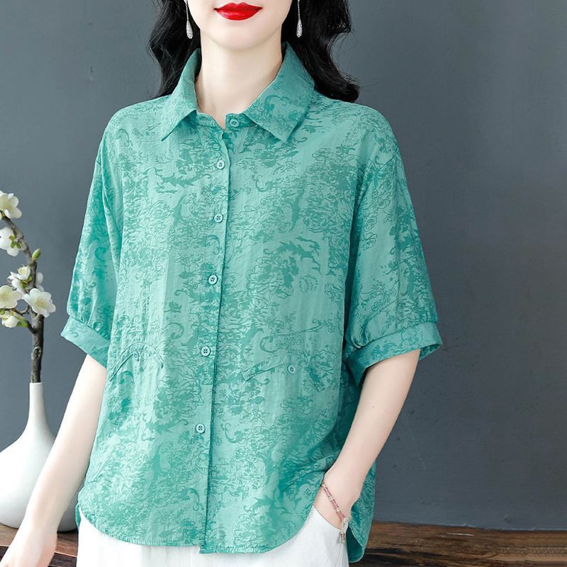 엄마의 여름 코튼 리넨 반팔 셔츠 여성의 여름 새로운 느슨한 슬리밍 웨스턴 스타일 작은 셔츠 유행 벨리 커버 셔츠