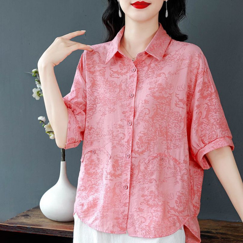 엄마의 여름 코튼 리넨 반팔 셔츠 여성의 여름 새로운 느슨한 슬리밍 웨스턴 스타일 작은 셔츠 유행 벨리 커버 셔츠스토어 가기