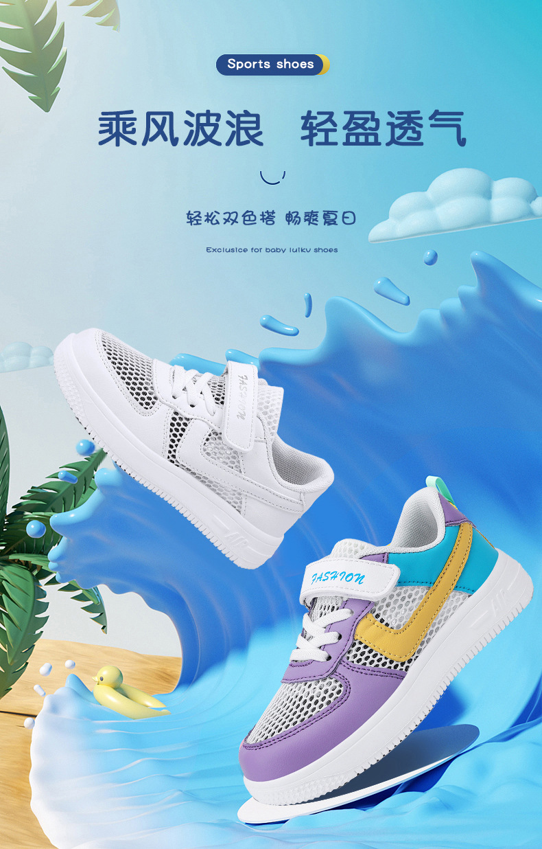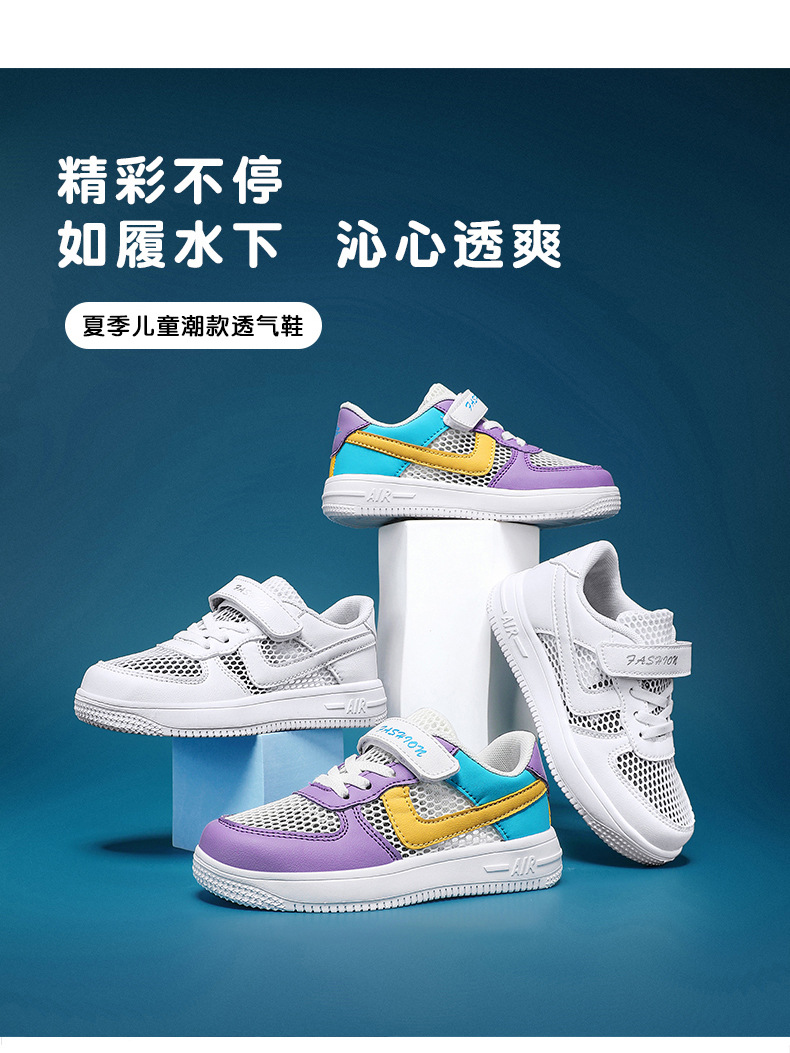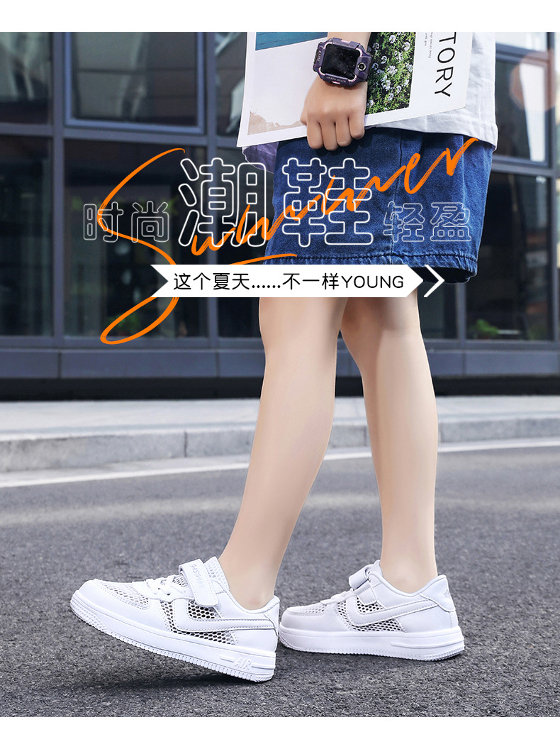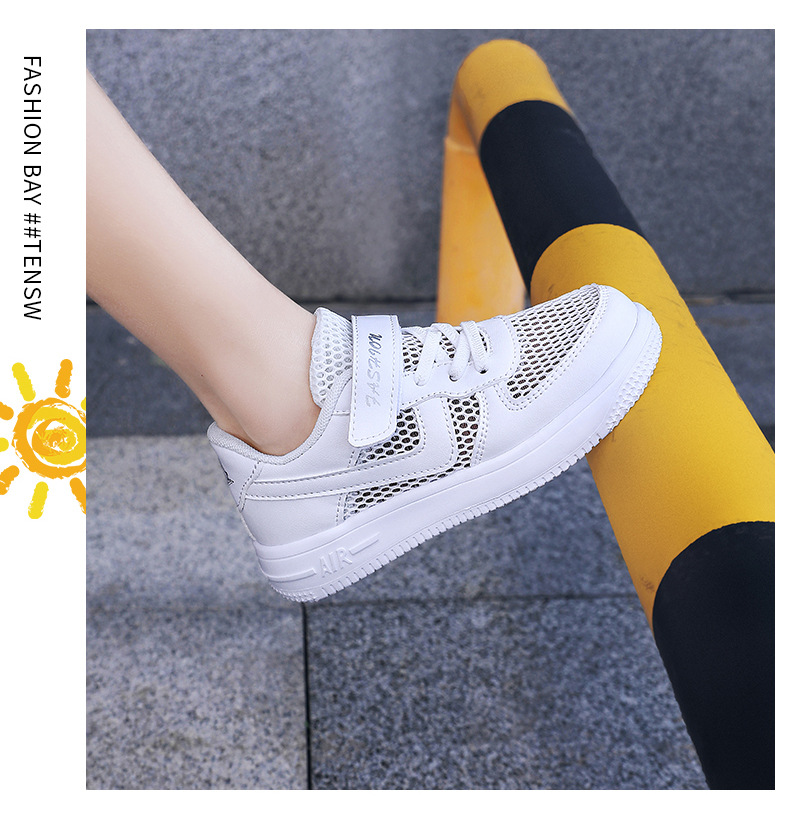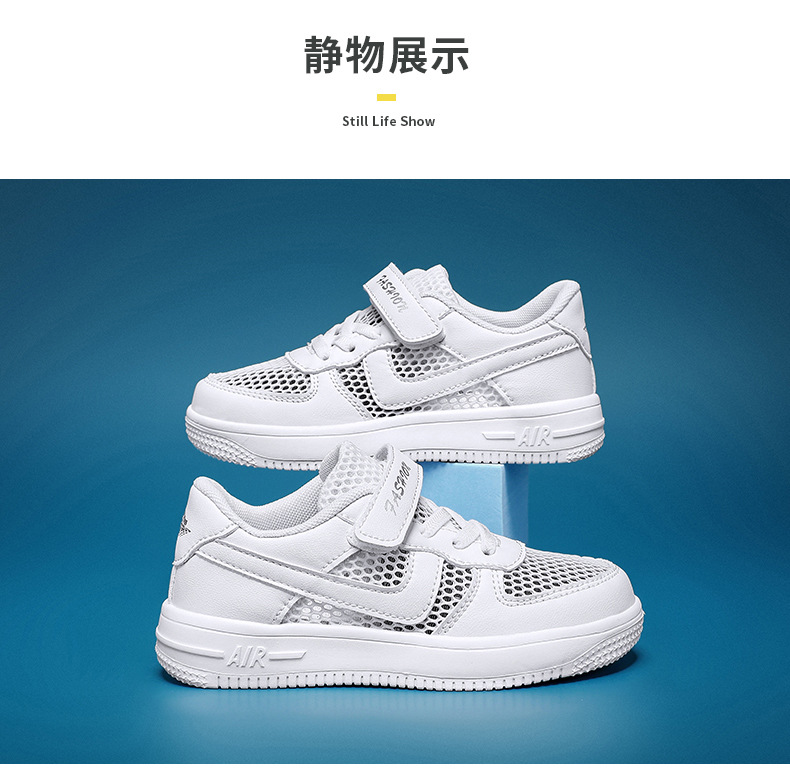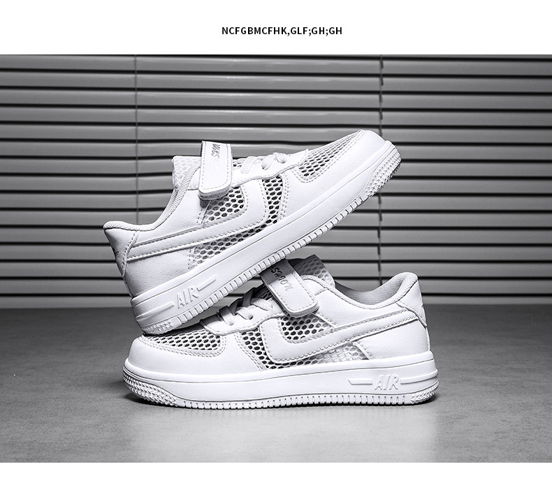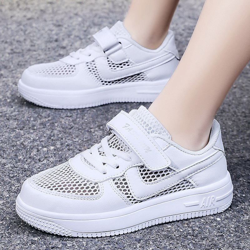 국경 간 도매 아동용 신발 여름 미끄럼 방지 부드러운 밑창 메쉬 패널 신발 남아 여아 트렌디하고 다용도로 활용 가능한 흰색 신발 가볍고 부드러운 밑창