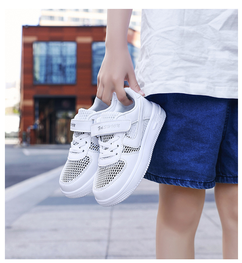 국경 간 도매 아동용 신발 여름 미끄럼 방지 부드러운 밑창 메쉬 패널 신발 남아 여아 트렌디하고 다용도로 활용 가능한 흰색 신발 가볍고 부드러운 밑창스토어 가기