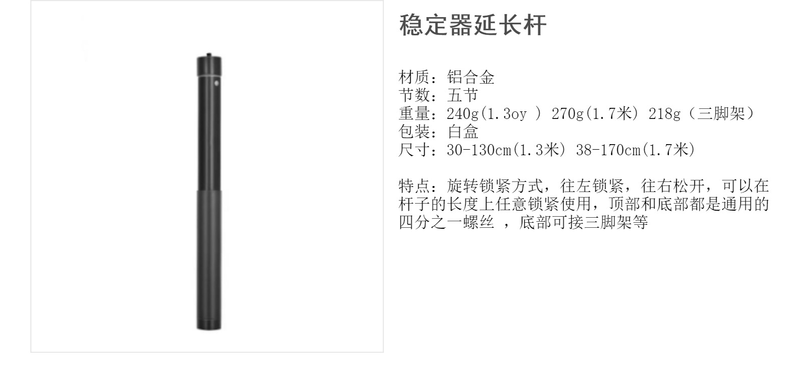 DJI Feiyu 알루미늄 합금 연장 막대 삼축 안정제 휴대용 망원경 셀카 스틱 스포츠 카메라 유니버설 로드