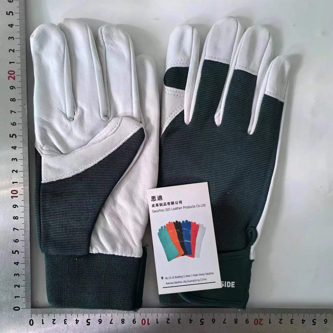 흰색 양가죽 장갑을 타고 드라이버 전자 제품 공장 탄성 천 안쪽 스틱 손 정비공 TIG 용접 유지 보수스토어 가기