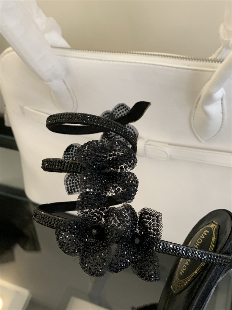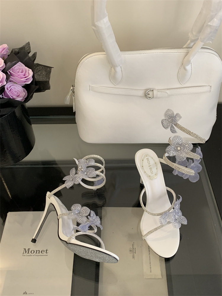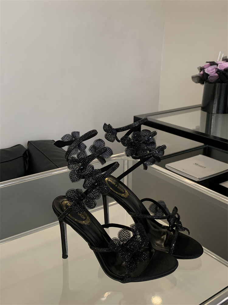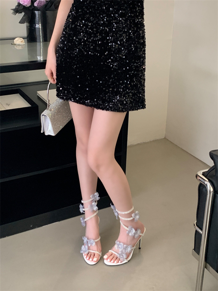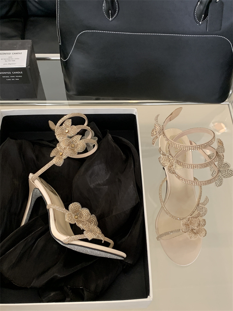 스네이크 모양의 랩 얇은 힐 샌들 여자 2025 봄 새 라운드 발가락 한 발가락 활 하이힐스토어 가기