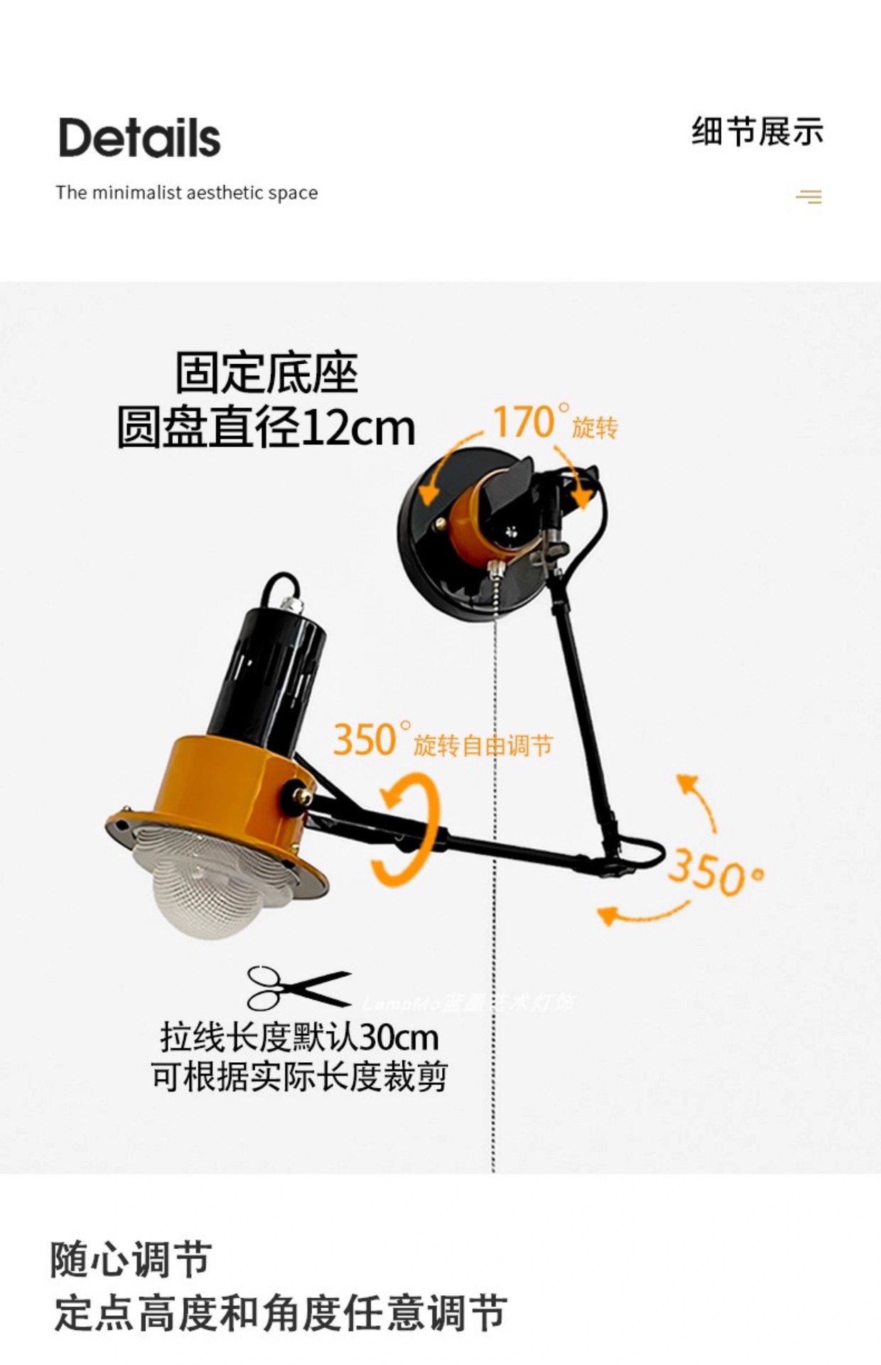 로커 팔 긴 극 램프 침실 침대 옆 벽 램프 개폐식 조정 가능한 각도 회전 접이식 케이블 연구 독서 램프