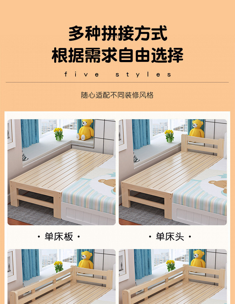 원목 조립식 침대 어린이 침대 원목 아기 침대 두꺼운 조립식 대형 침대 어린이 침대 옆 침대 평면 연결 침대 공장스토어 가기