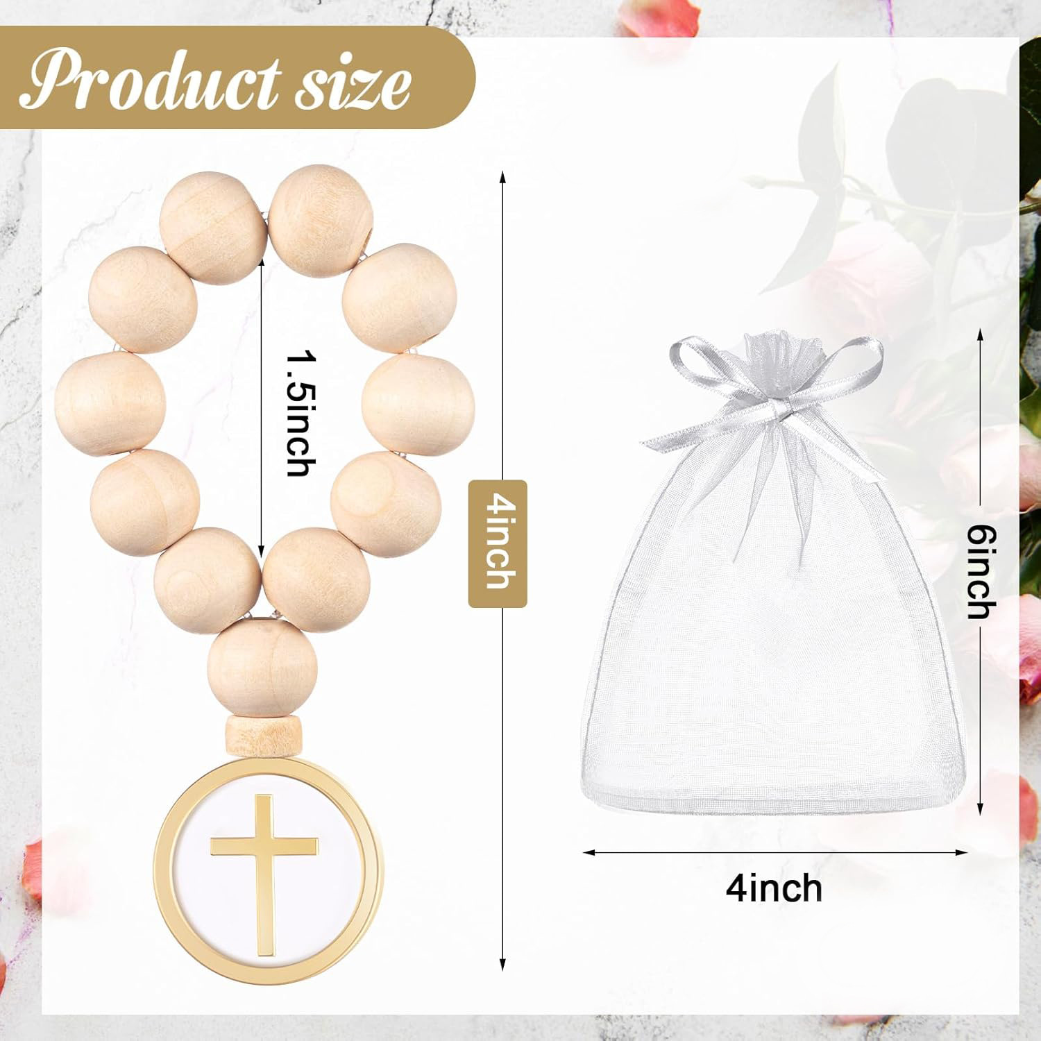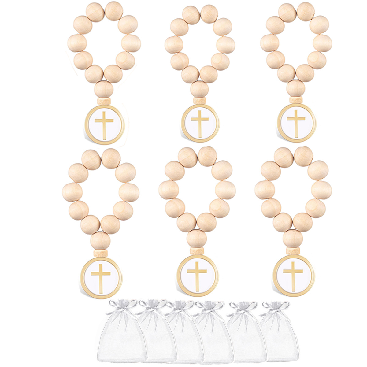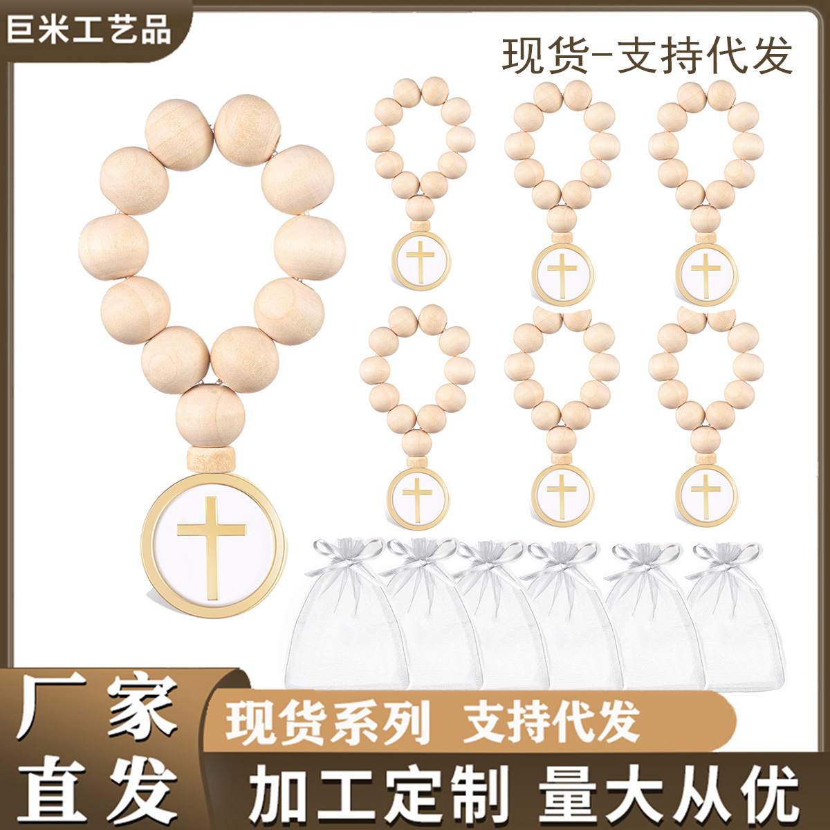 성체 침례를위한 크로스 화이트 메쉬 백과 함께 재고 나무 묵주 벌크기도 묵주스토어 가기