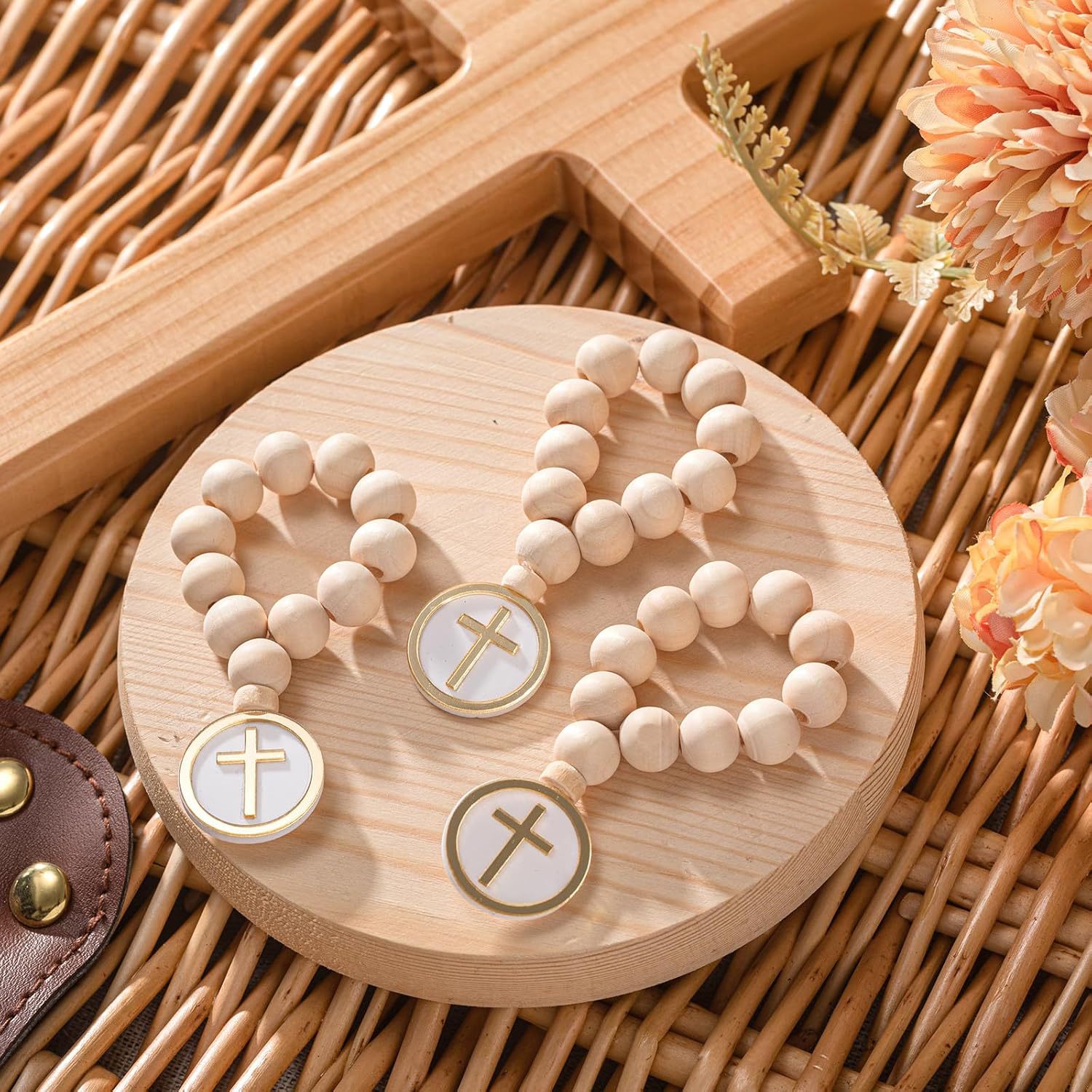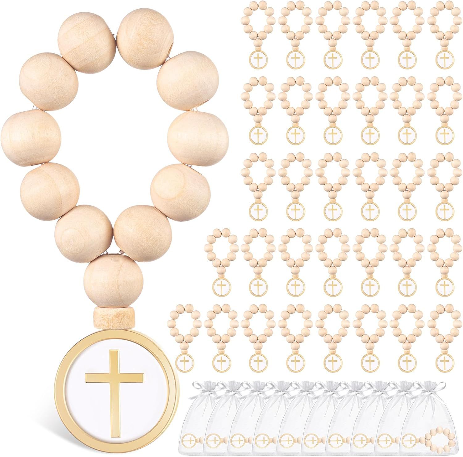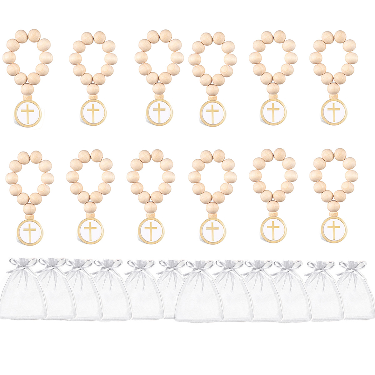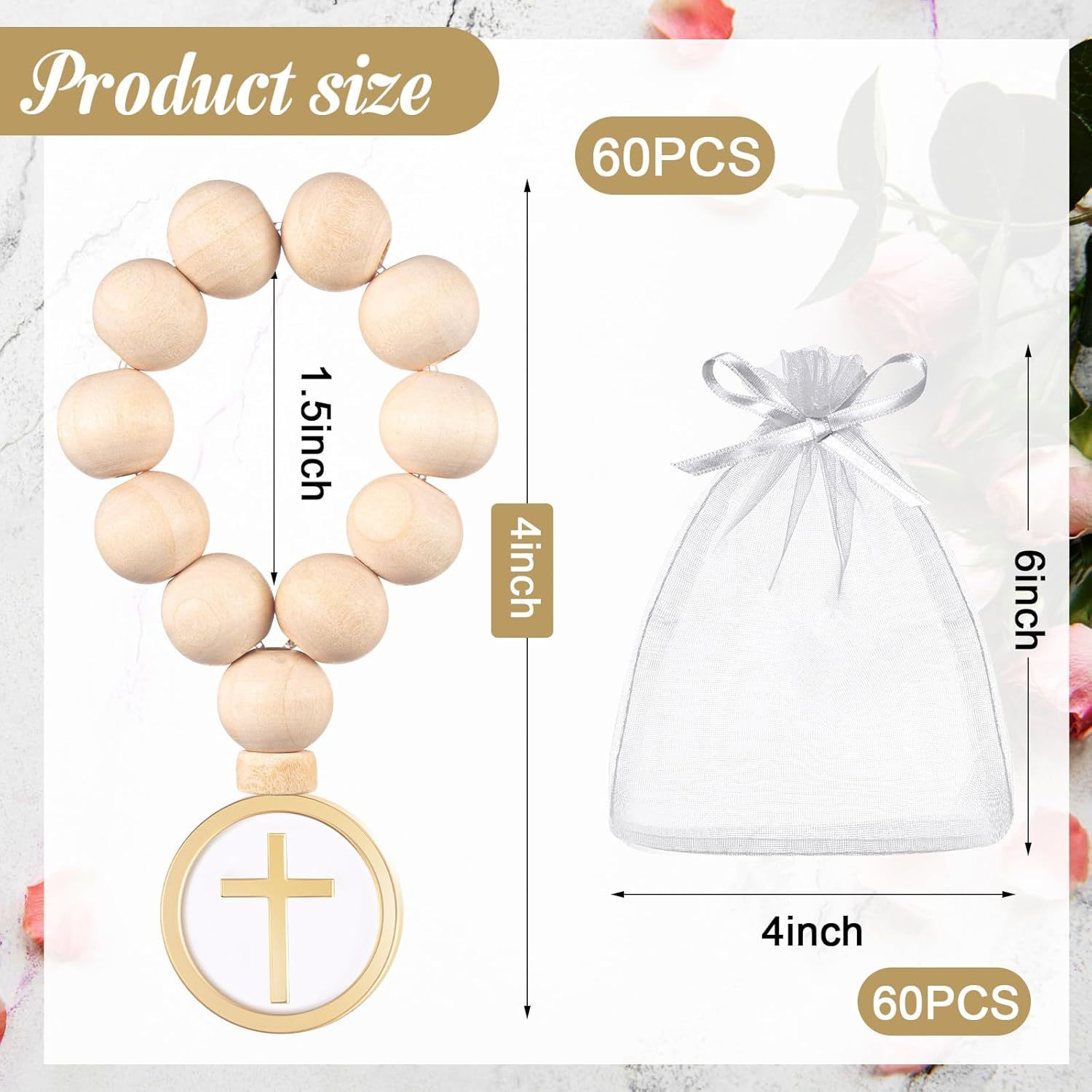 성체 침례를위한 크로스 화이트 메쉬 백과 함께 재고 나무 묵주 벌크기도 묵주스토어 가기