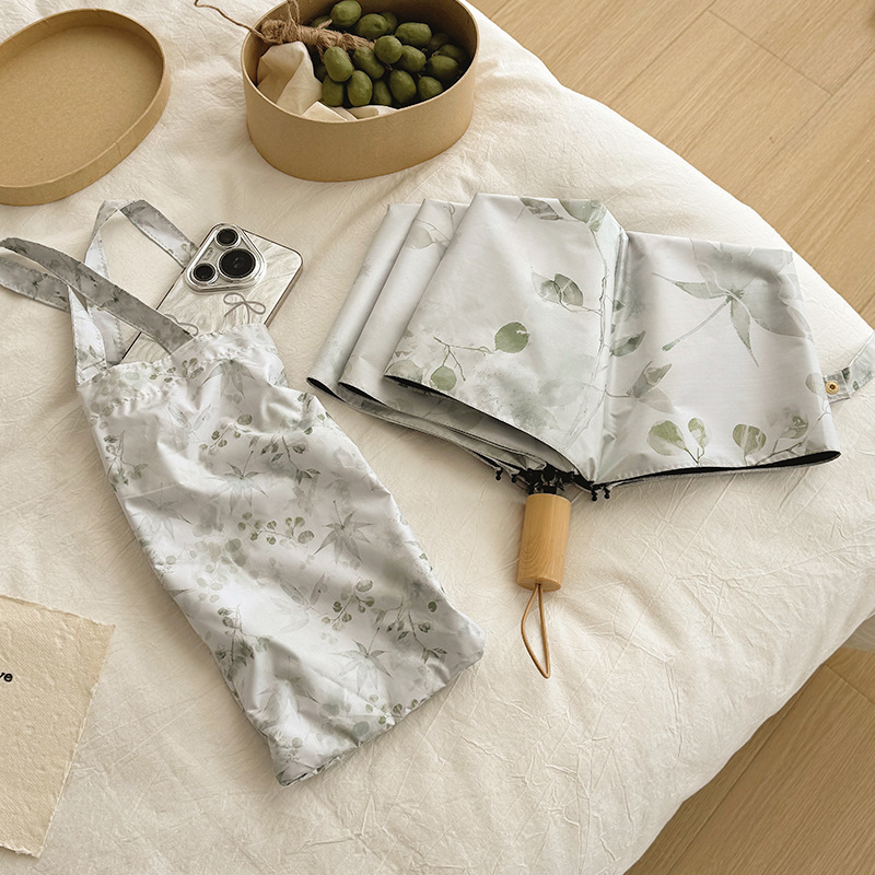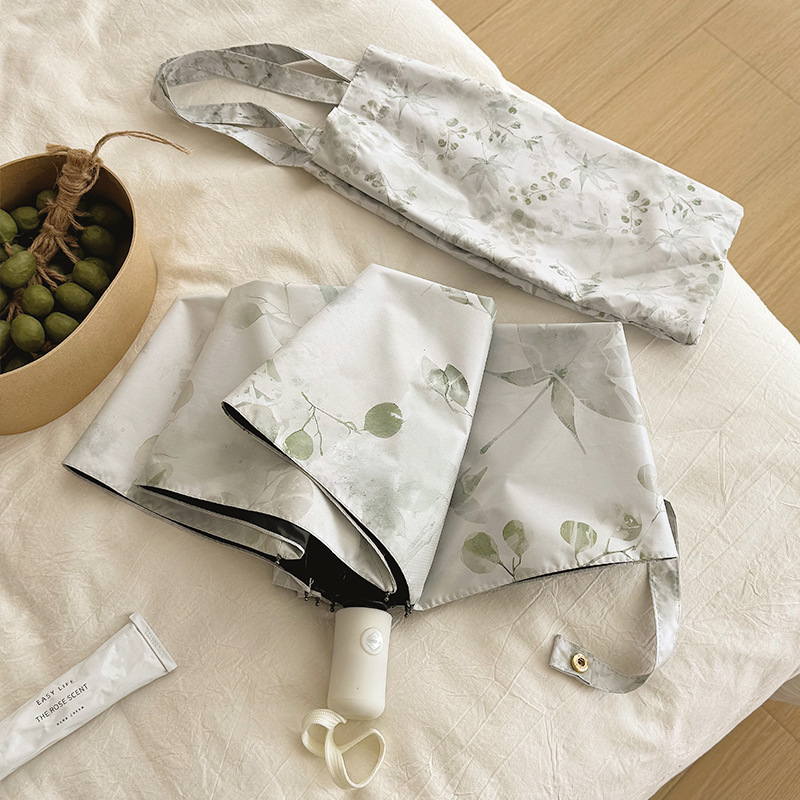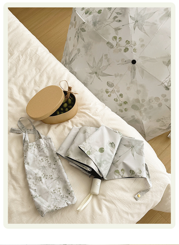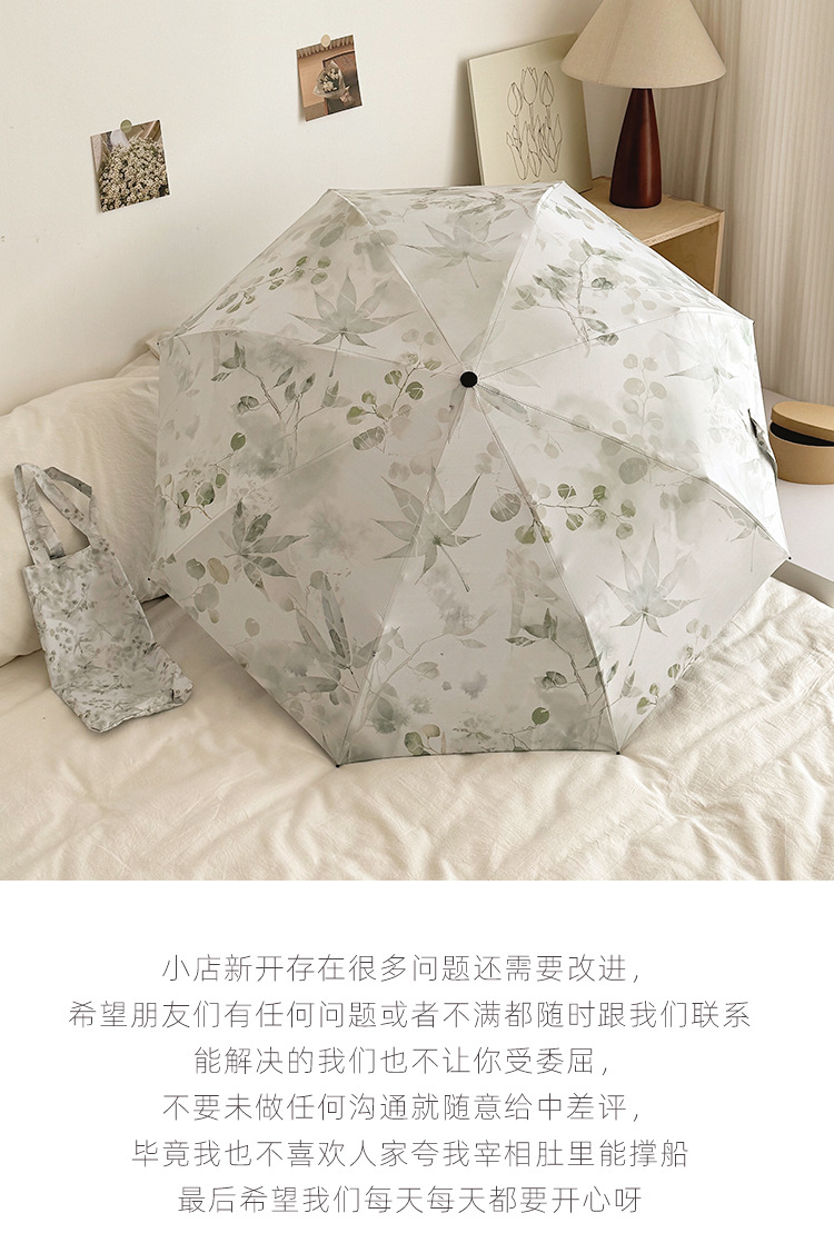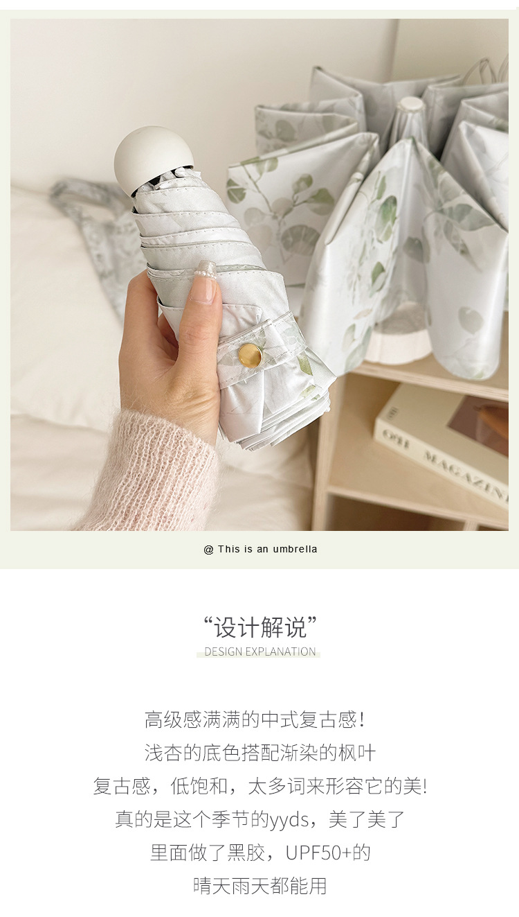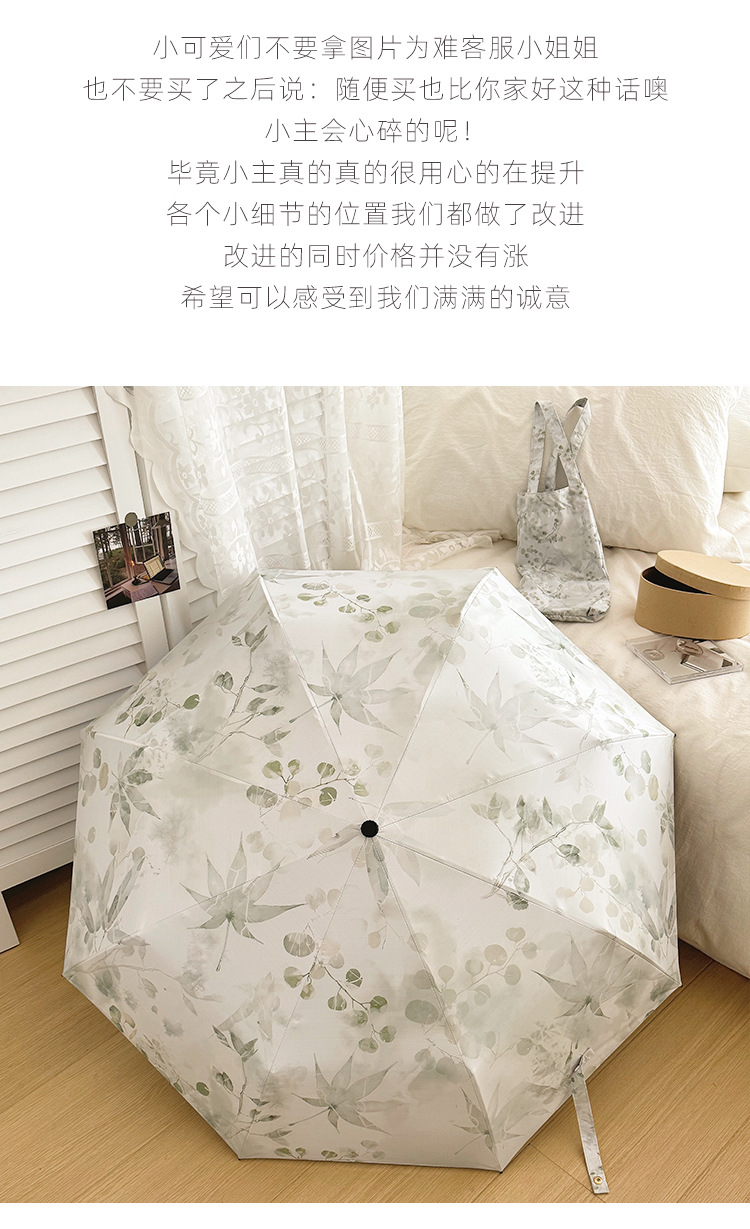 새로운 Guofeng 새로운 중국 메이플 리프 잉크 접는 태양 보호 UV 보호 자동 이중 목적 블랙 접착제 확대 우산스토어 가기