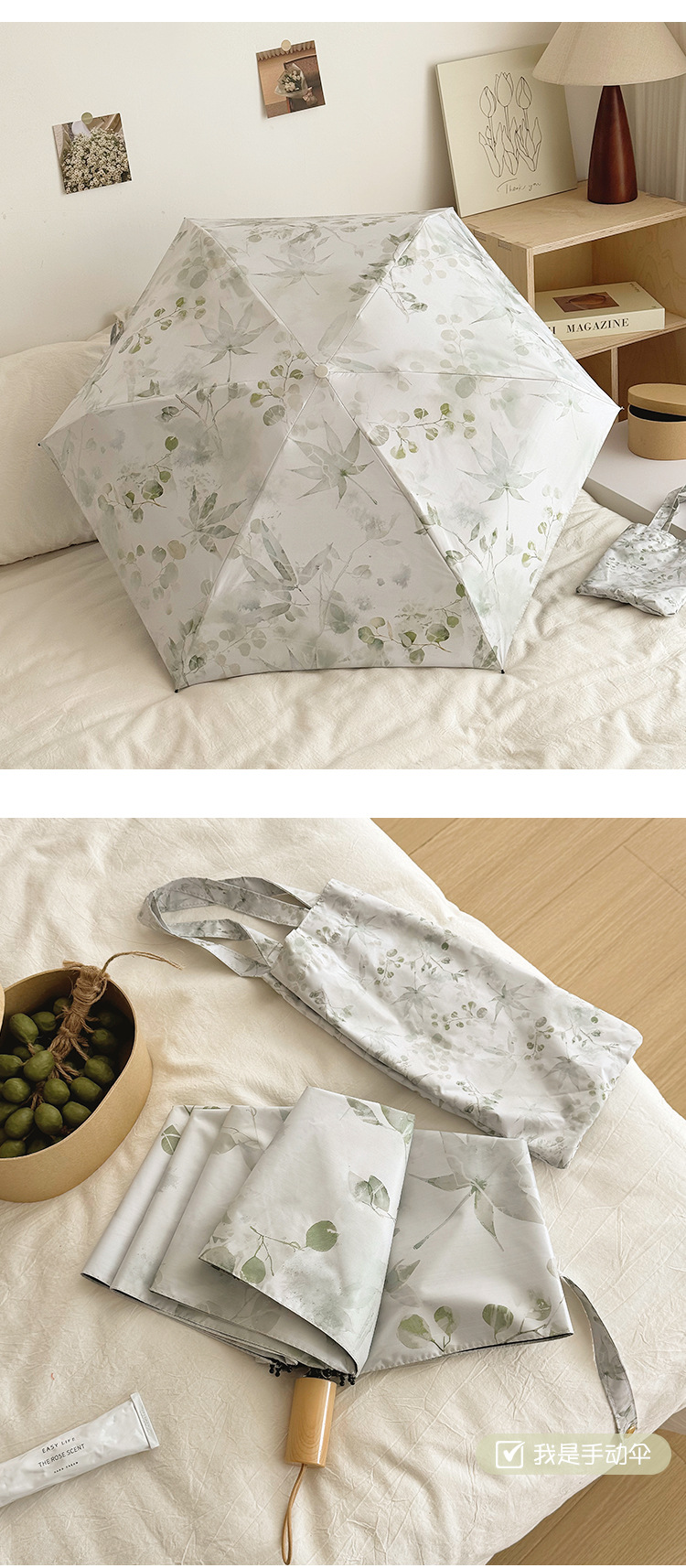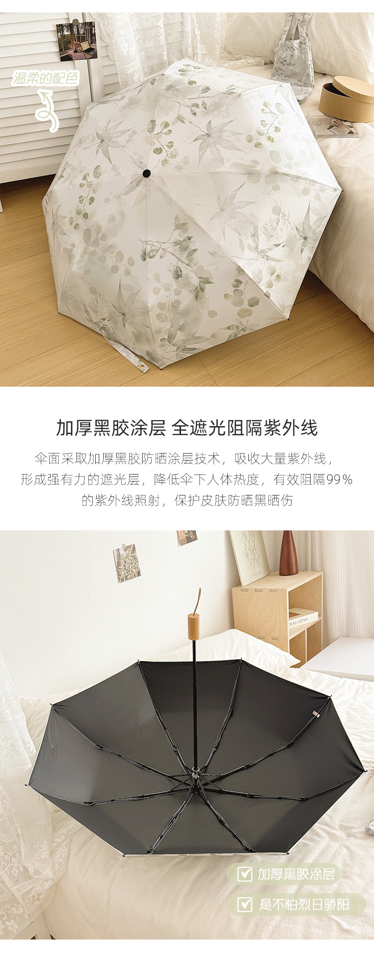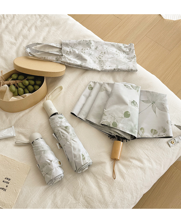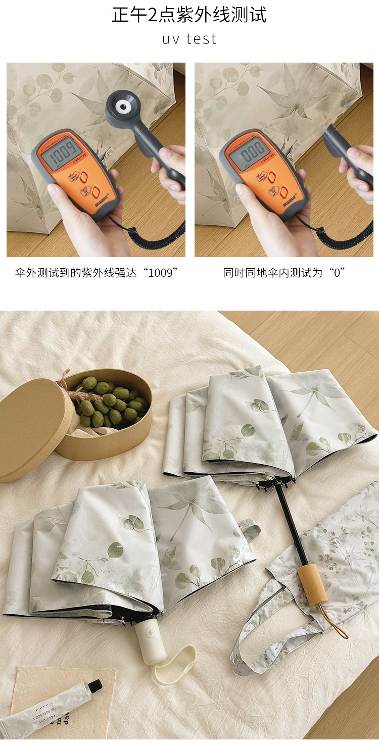 새로운 Guofeng 새로운 중국 메이플 리프 잉크 접는 태양 보호 UV 보호 자동 이중 목적 블랙 접착제 확대 우산스토어 가기