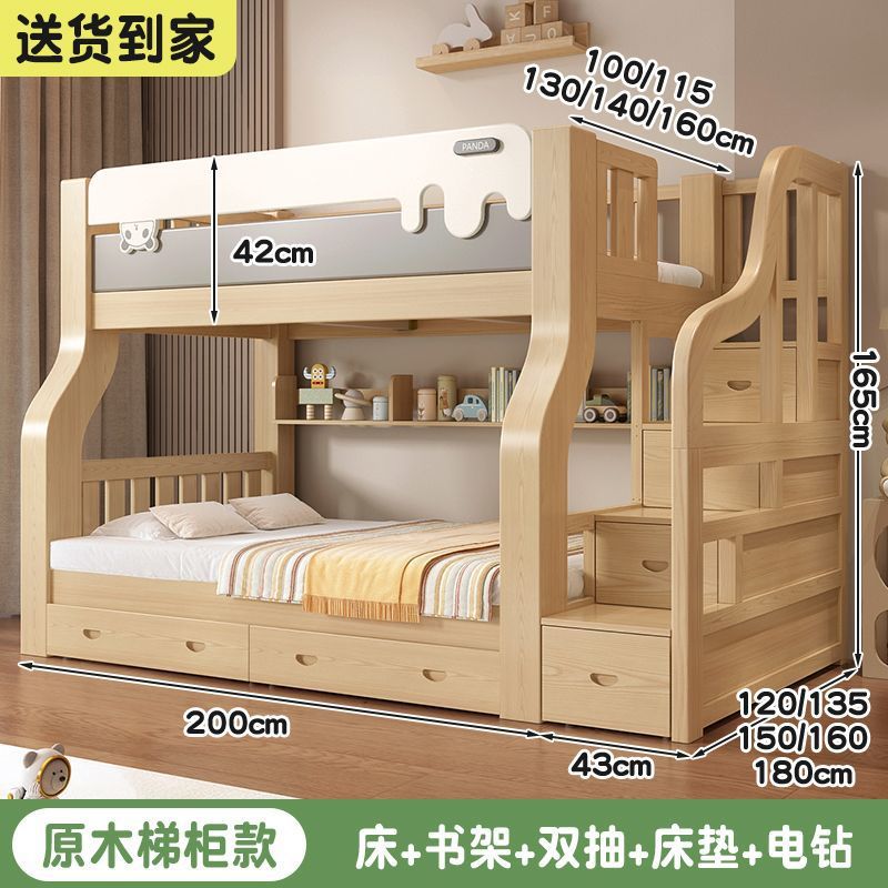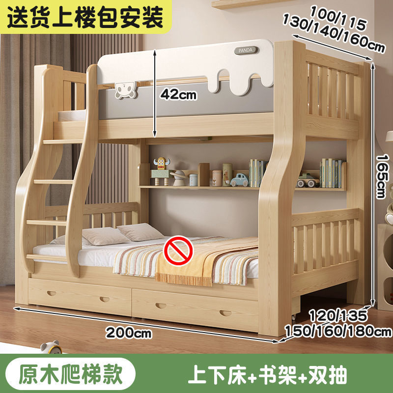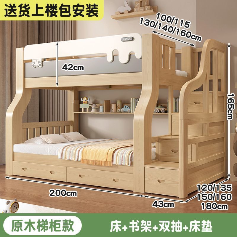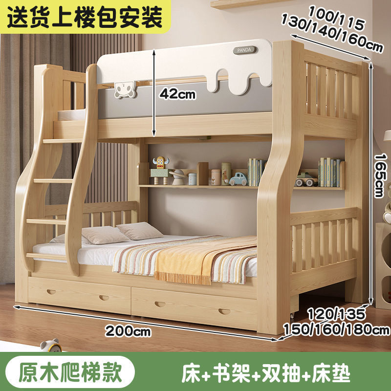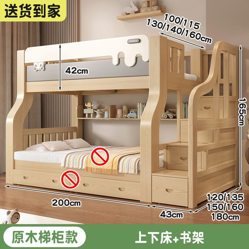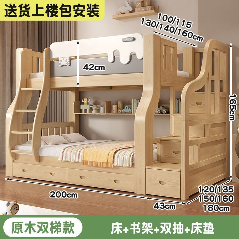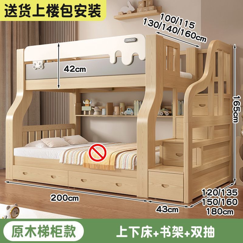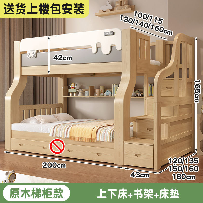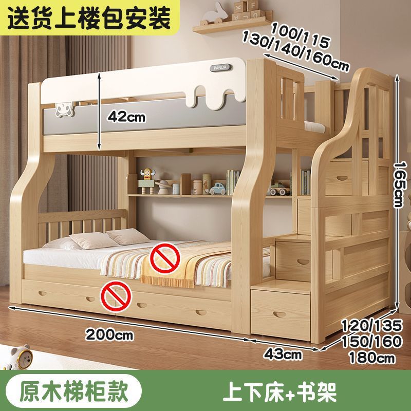 단단한 나무 어머니-아이 침대 두꺼운 이층 침대 2 층 높고 낮은 침대 더블 침대 작은 아파트 상하 침대 나무 침대