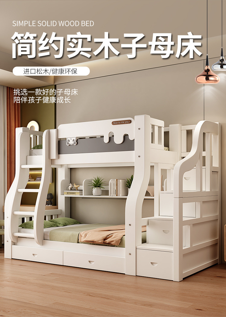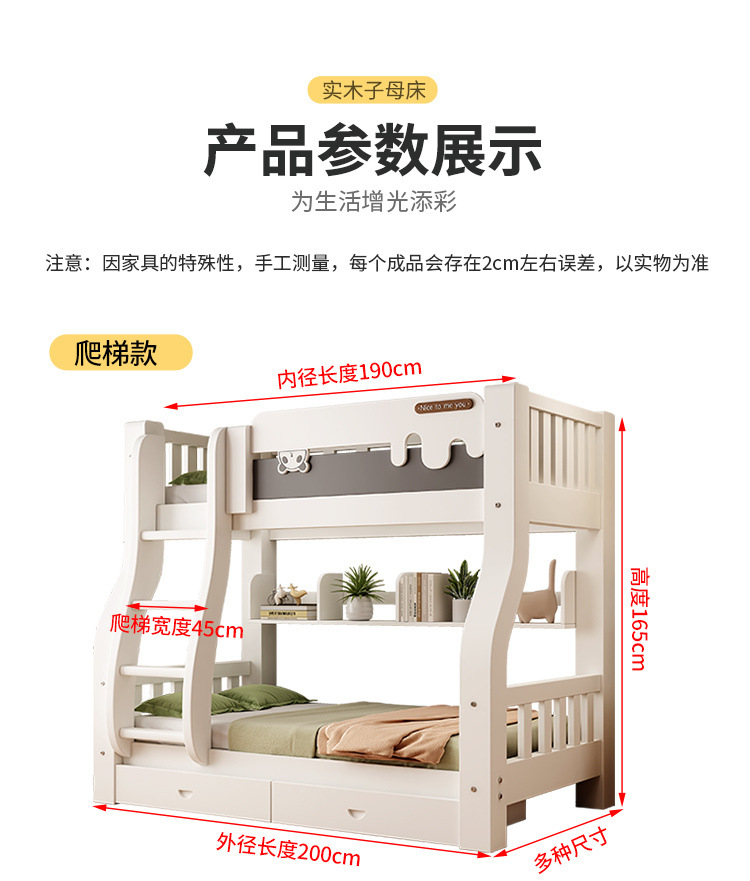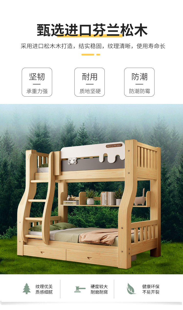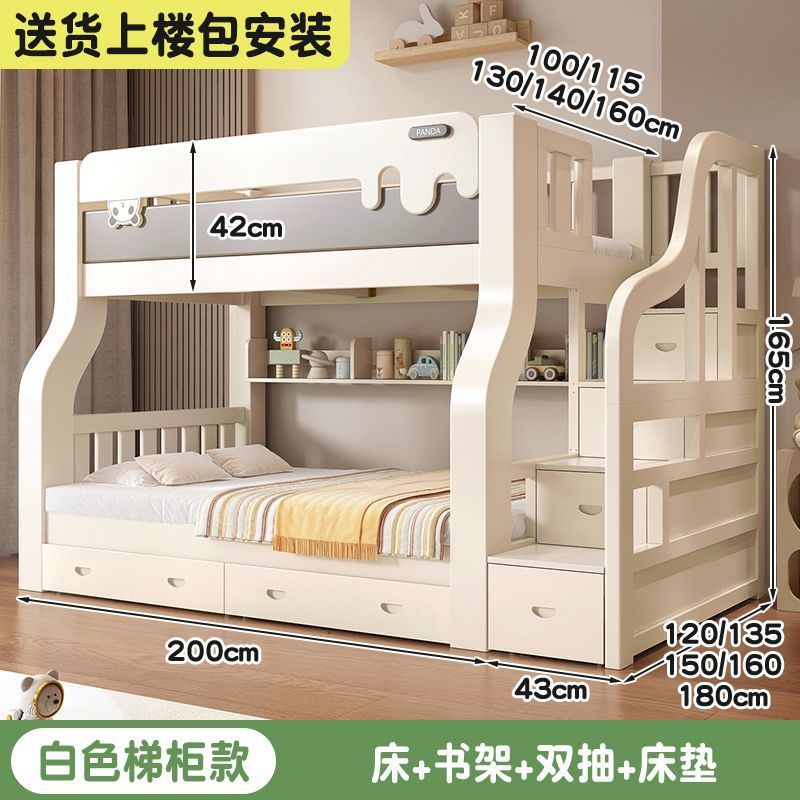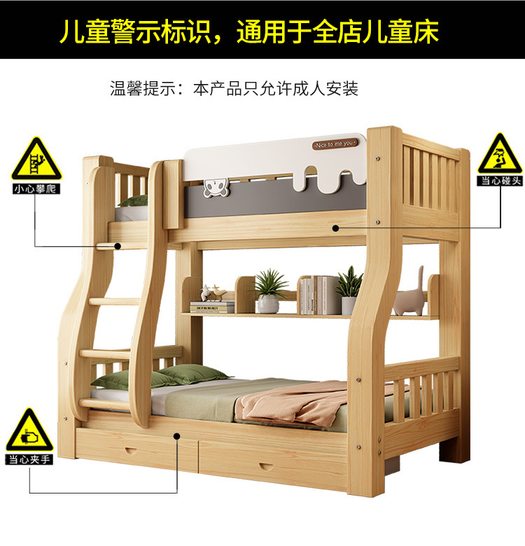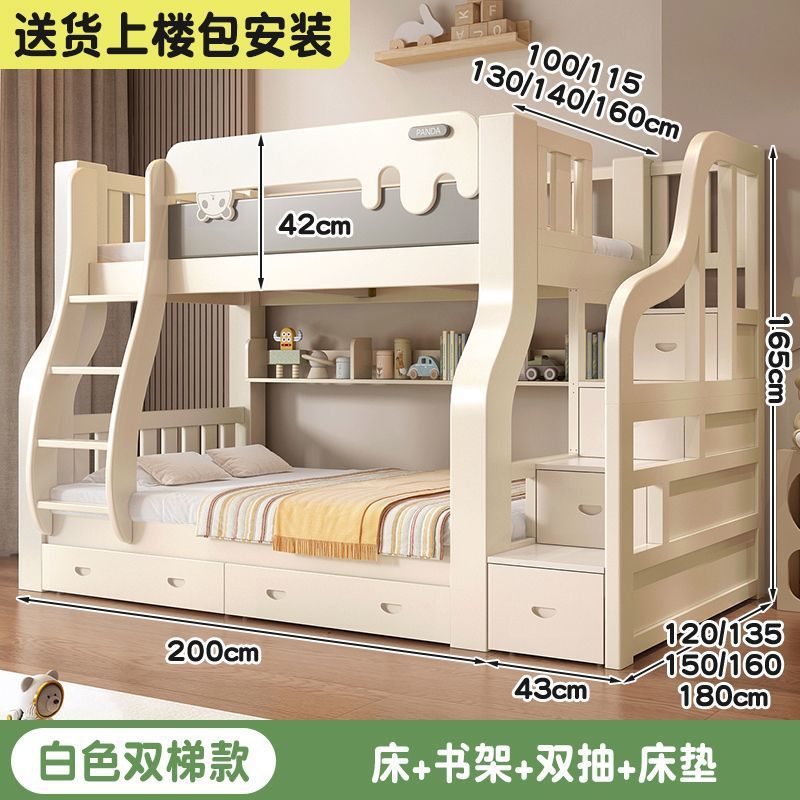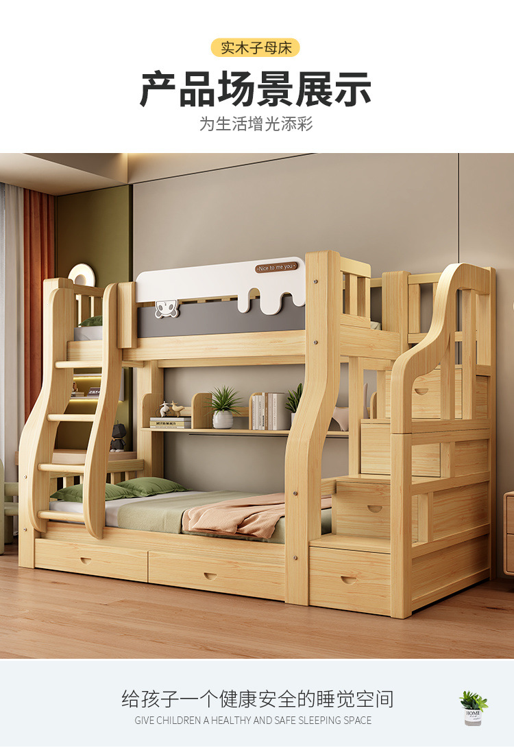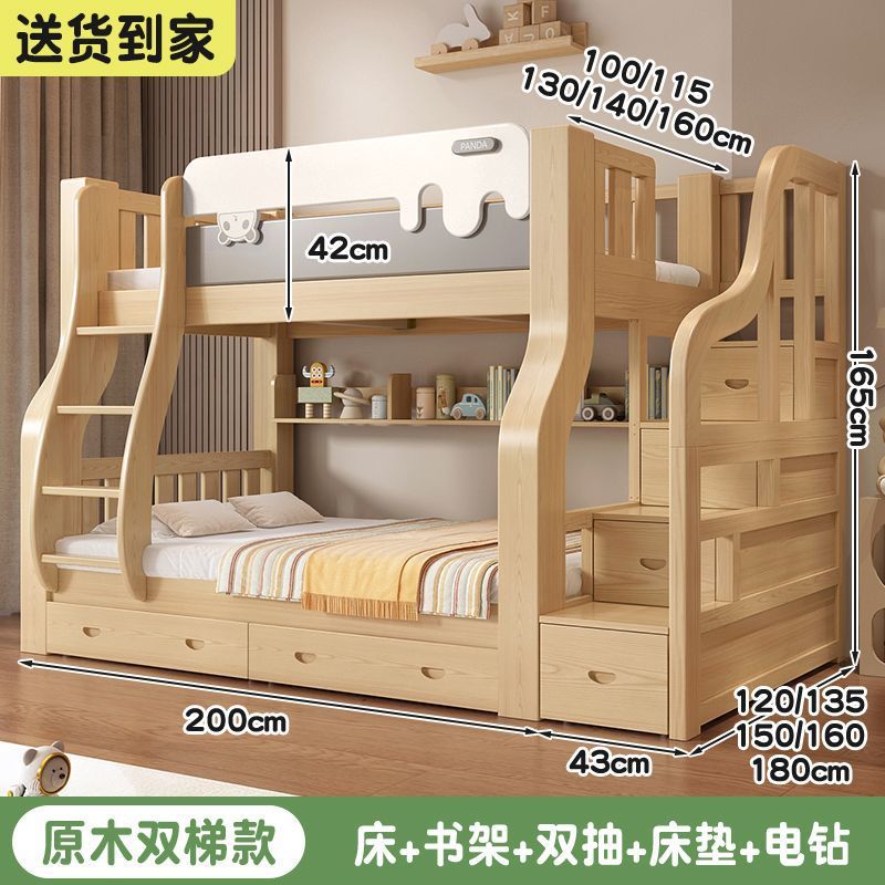 단단한 나무 어머니-아이 침대 두꺼운 이층 침대 2 층 높고 낮은 침대 더블 침대 작은 아파트 상하 침대 나무 침대