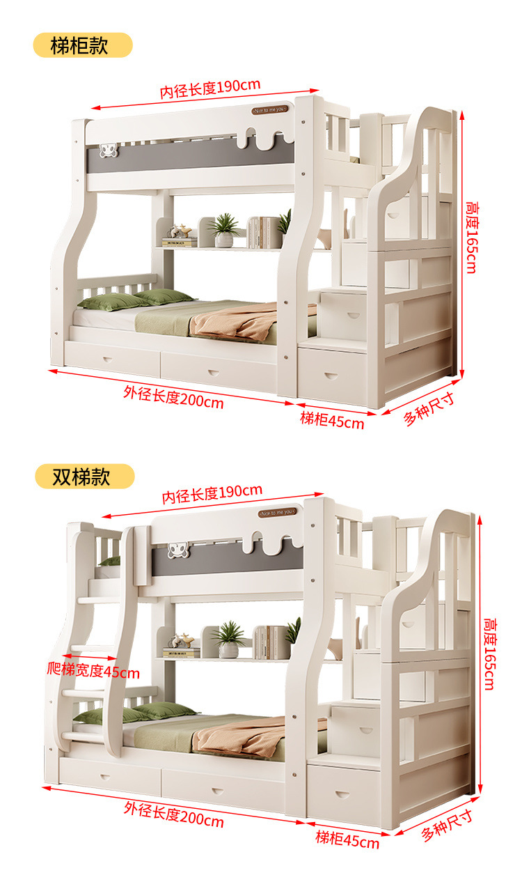 • 상부 침대 폭 1.6m - 하부 침대 폭 1.8m