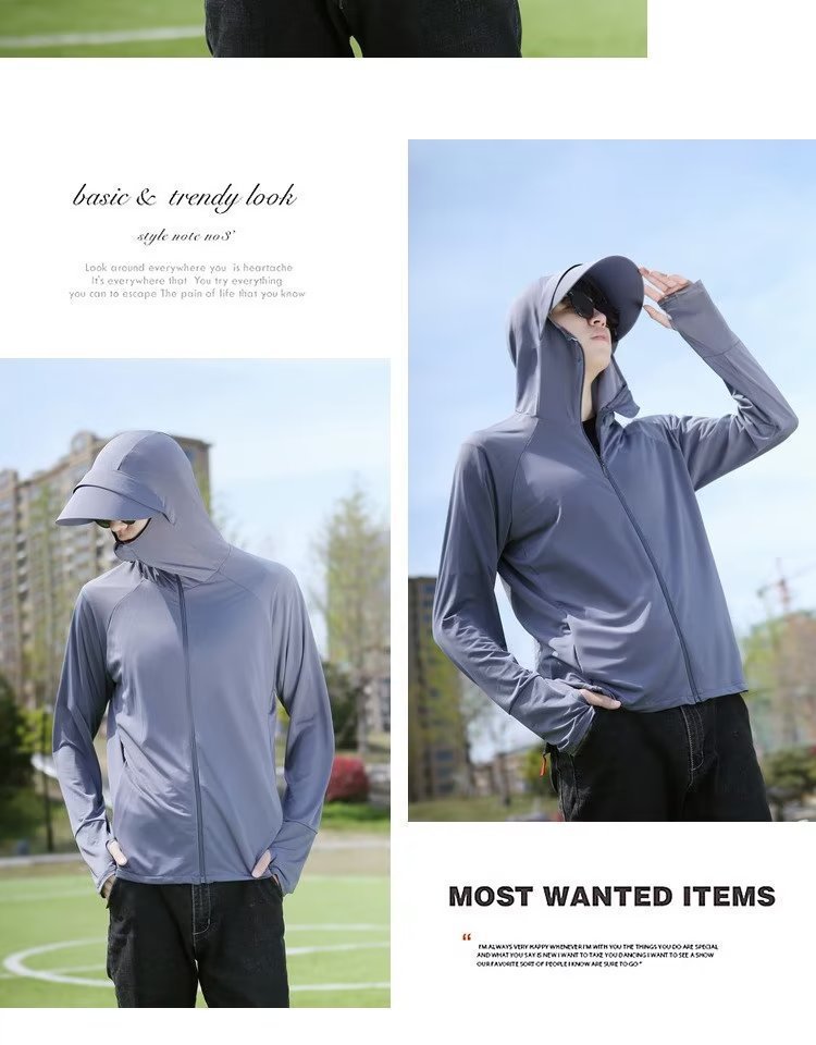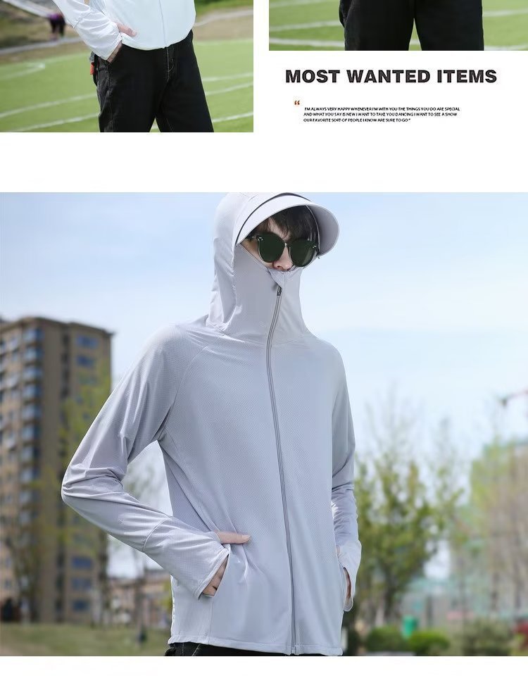 남성과 여성을위한 아이스 실크 빠른 건조 태양 보호 의류 여름 얇은 메쉬 통기성 안티 자외선 낚시 태양 보호 의류 커플 재킷