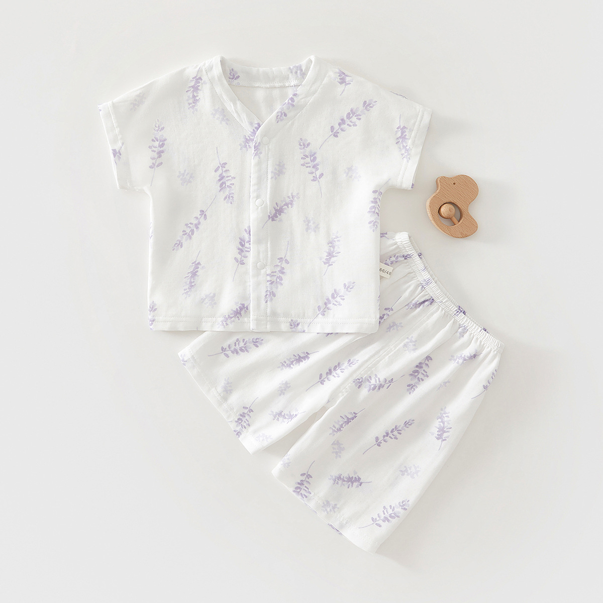 아기 더블 레이어 원사 반팔 반바지 대나무 섬유 여름 잠옷 홈 옷 분할 옷 아기 뼈없는 세트